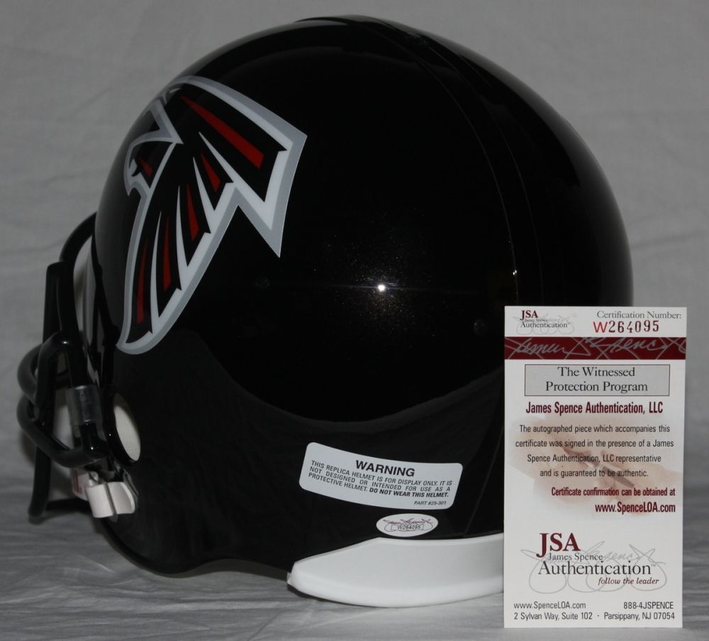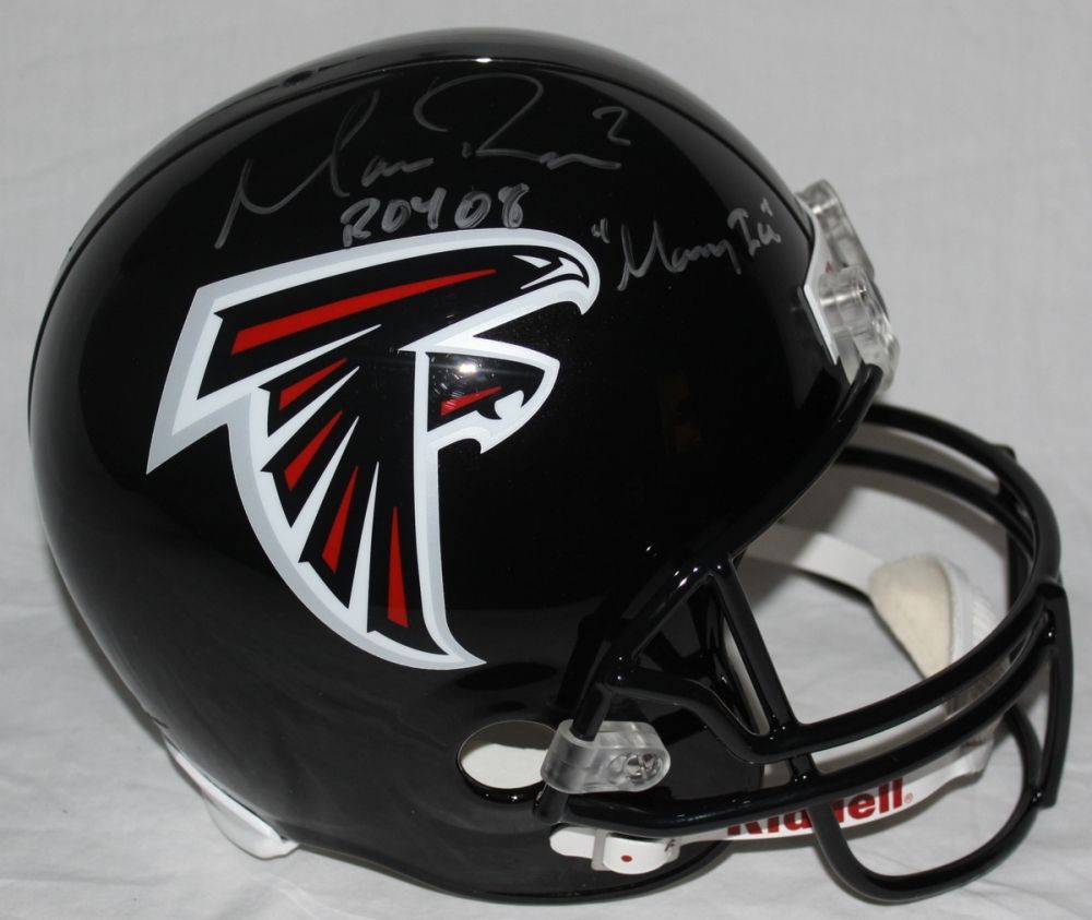 Riddell full size replica helmet. Hand signed and in silver paint pen by Matt Ryan and inscribed "ROY 08" and "Matty Ice". The autograph will come with a JSA COA for authentication purposes.