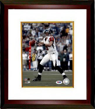 Schaub was selected by the Atlanta Falcons in the 3rd round of the 2004 NFL draft as the 90th overall pick. In 2004, Matt Schaub played in 6 games with the Atlanta Falcons, including starting the week sixteen contest against the New Orleans Saints, replacing the injured Michael Vick. In 2005, Schaub was named the Most Valuable Player in the American Bowl preseason game in Tokyo, Japan. In front of 45,203 fans at the Tokyo Dome, Schaub completed 11 of 13 passes for 117 yards and two touchdowns in a 27-21 comeback victory over the Indianapolis Colts. During the regular season he played QB in 5 games, starting one. His lone start came against the New England Patriots in week 5; Schaub threw for 298 yards and three touchdowns in the 31-28 loss. Schaub was the holder on extra points and field goals. Matt Schaub has hand signed this Atlanta Falcons 8x10 Photo. PSA Hologram and Certificate of Authenticity. Custom White Mat and Premium Mahogany Color Framed as shown.
