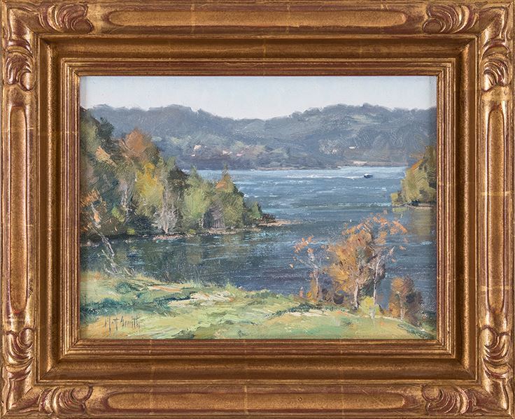 Matt Smith (1960 - ). Table Rock Lake. 9" x 12" oil on linen. Signed lower left.