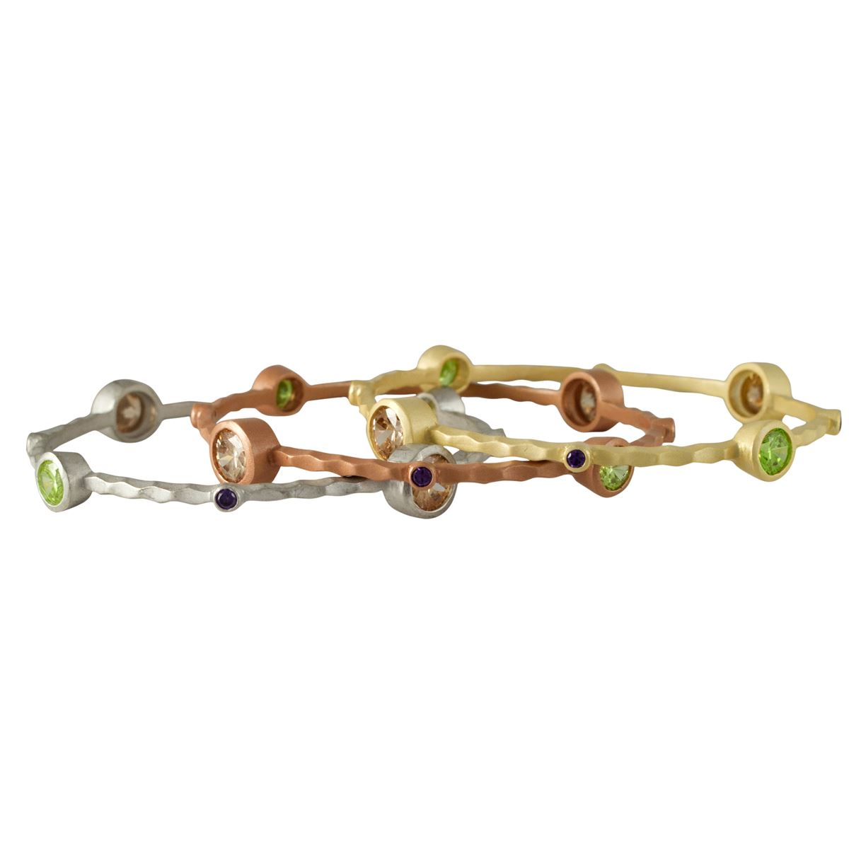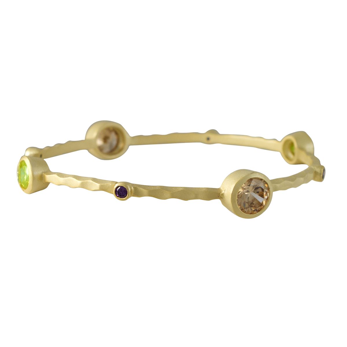 Matte Gold Tone Brass Bangle With Multi Colored Crystals, 60Mm