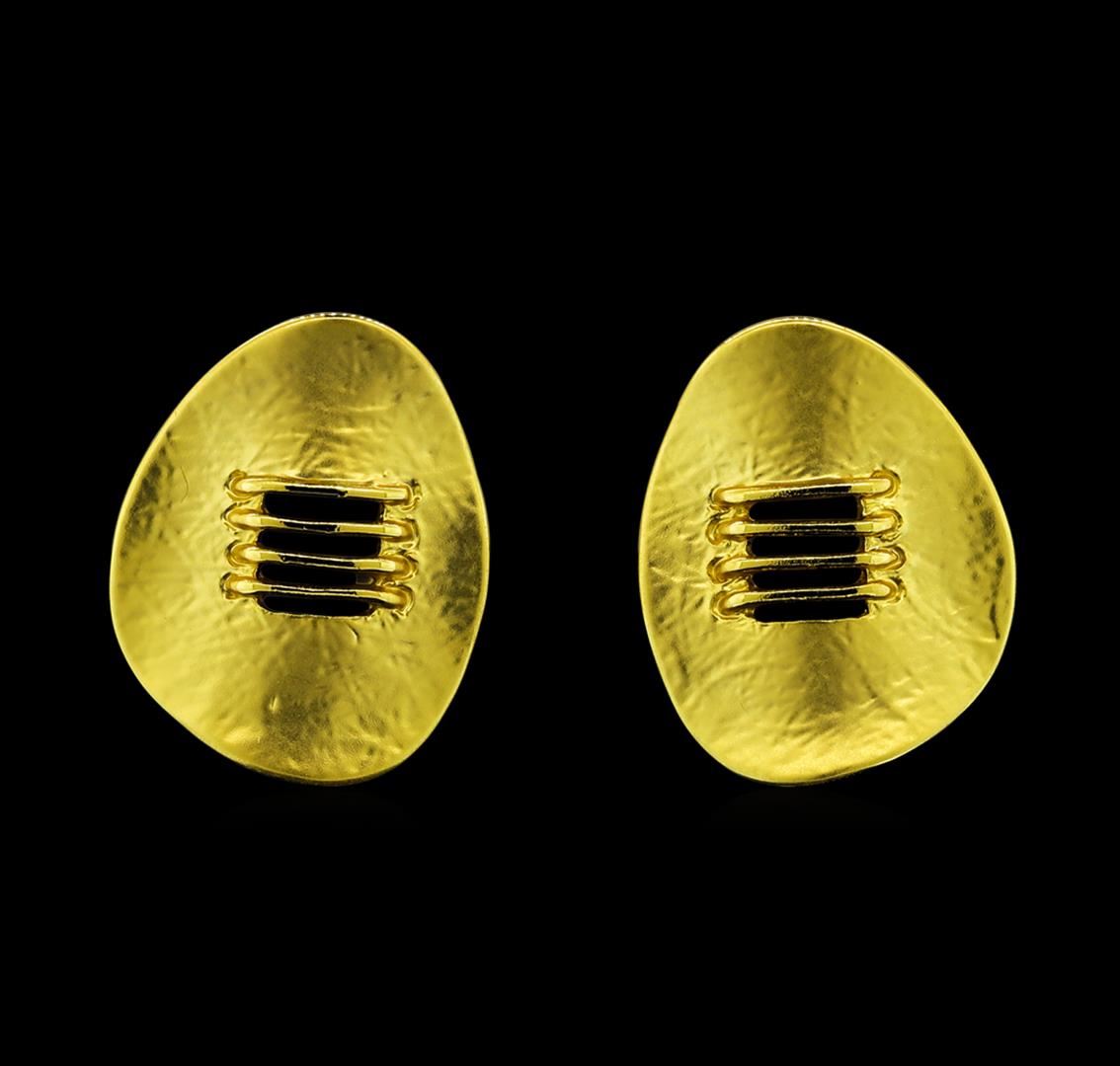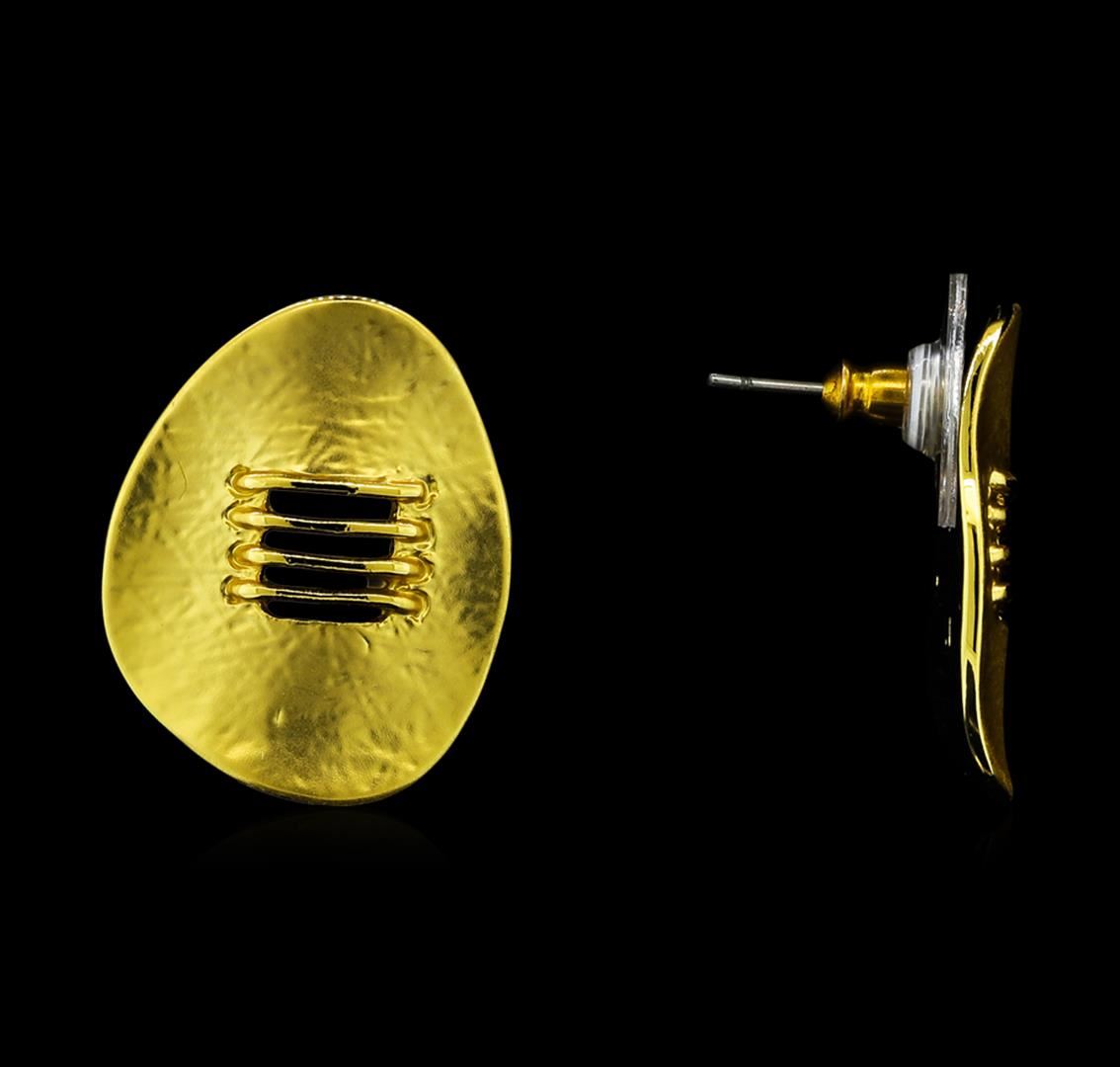 High end designer jewelry. Matte Oval Earrings - Gold Plated. Gold Plated Stud Set. Gold. 1inch. Total Weight: 5 grams.
