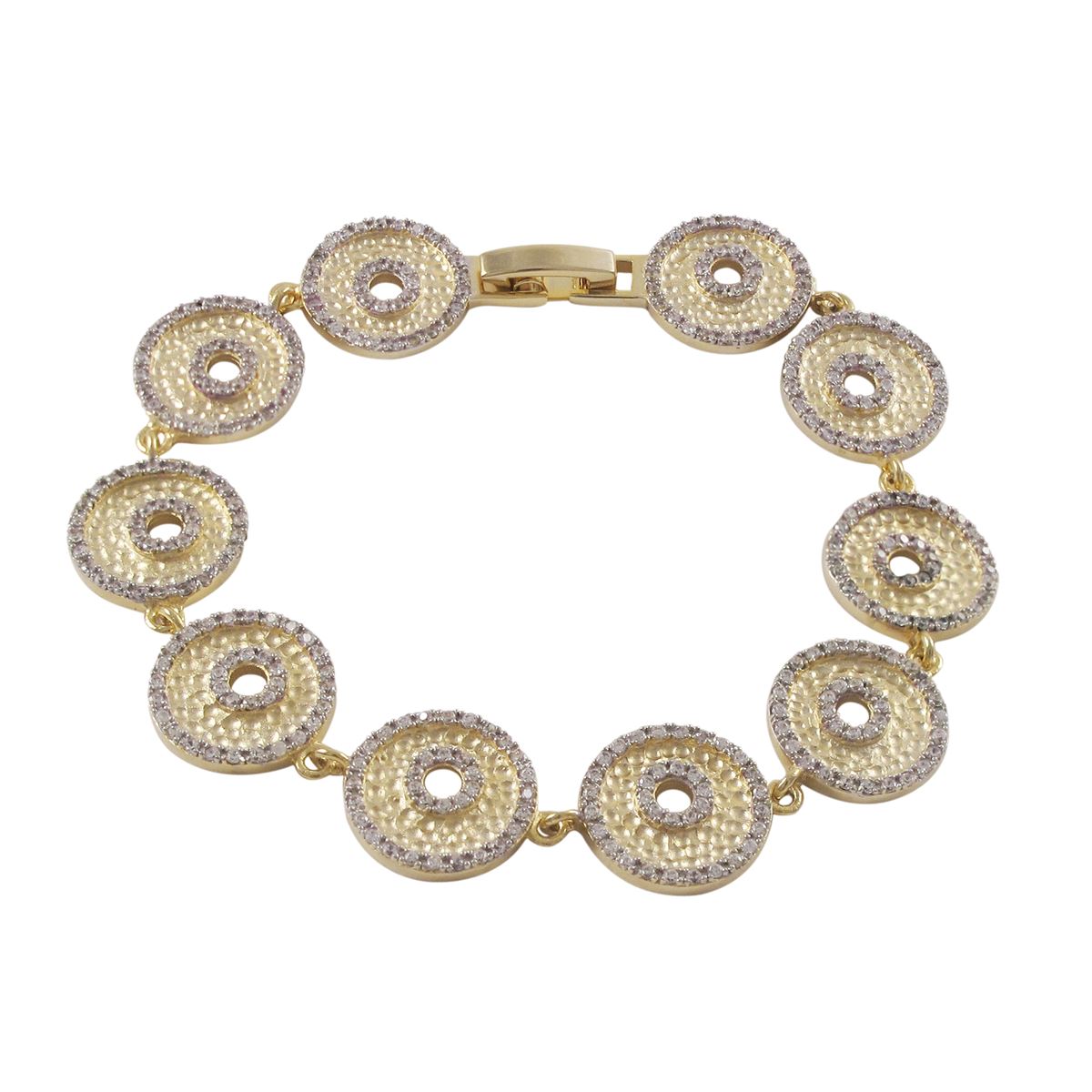 Matte Two Tone Brass Open Circle CZ Bracelet With Fold-Over Clasp, 7.25"