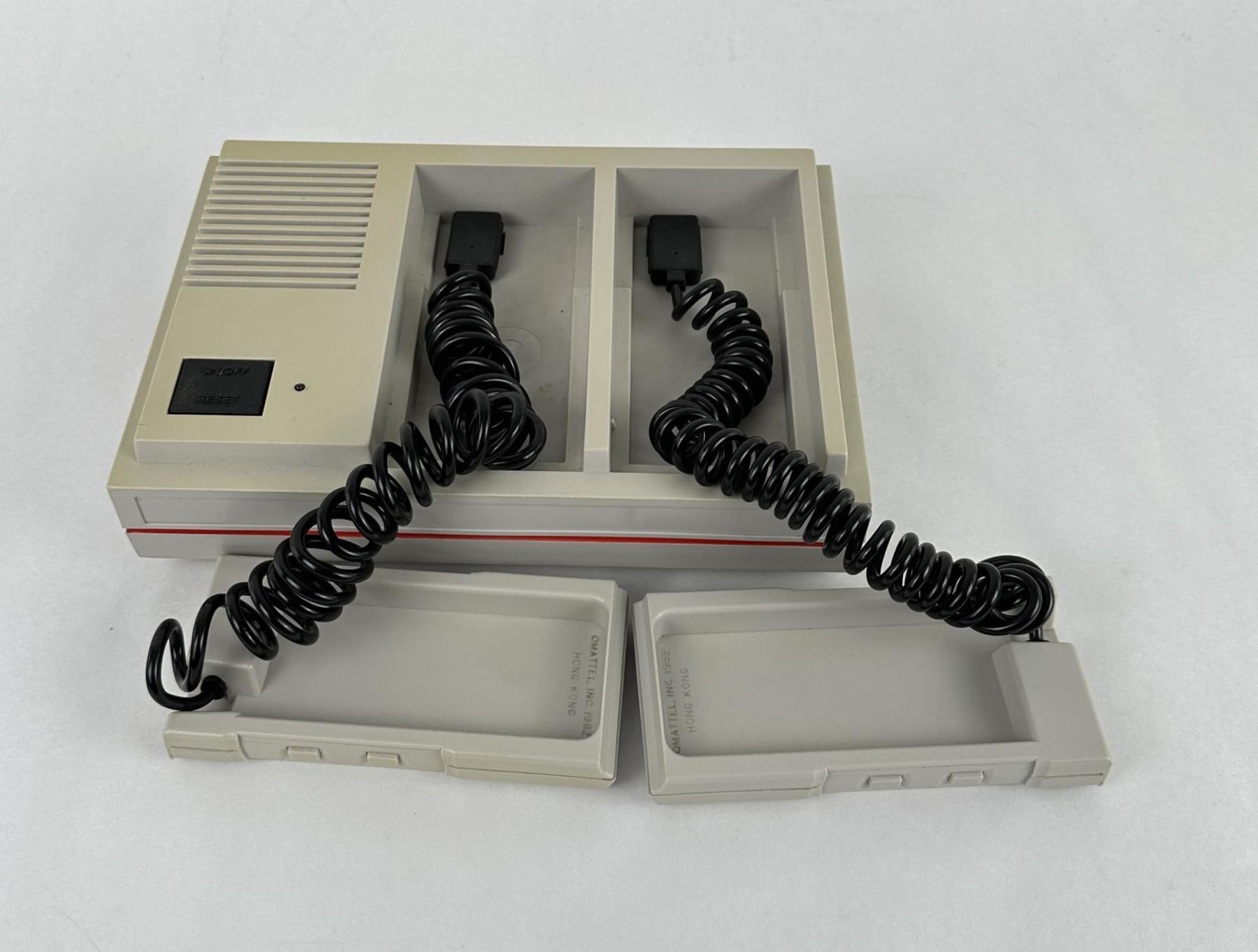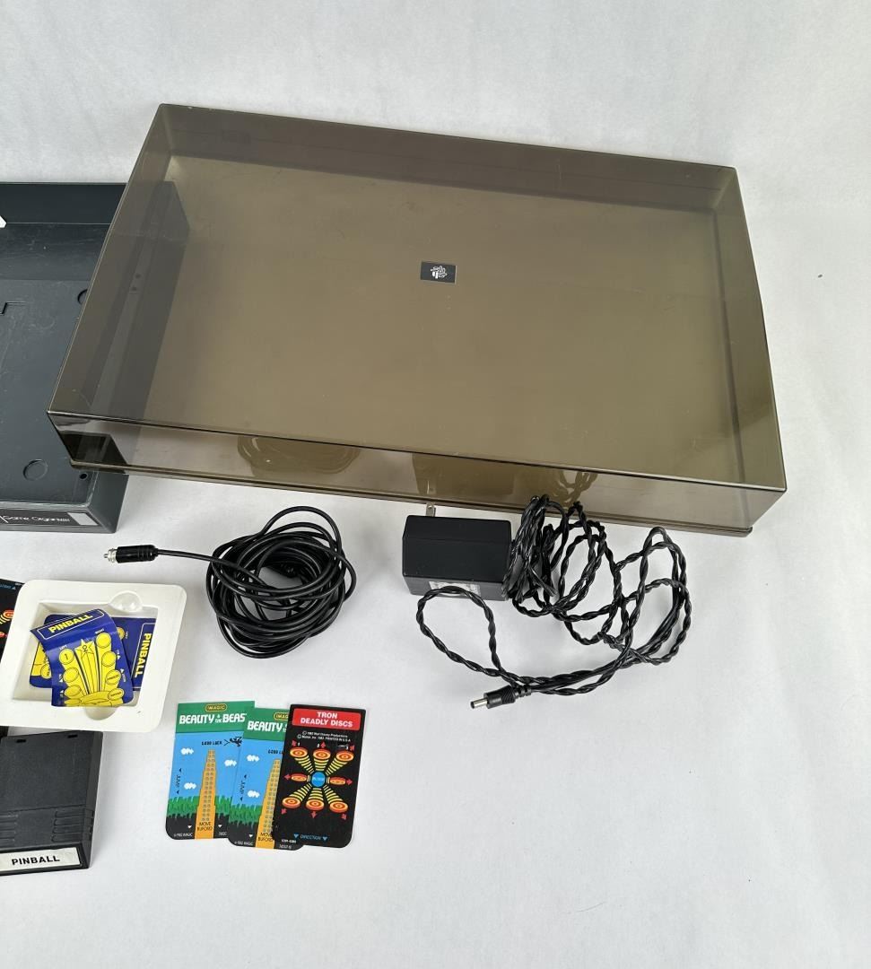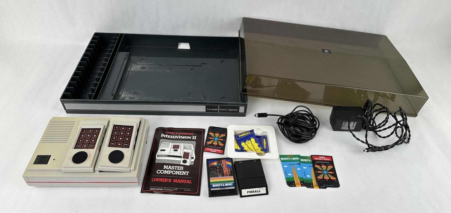 Lot includes game console, original organizer, games, power cords, and owner's manual. Organizer measures 21" by 13" by 5 1/4".