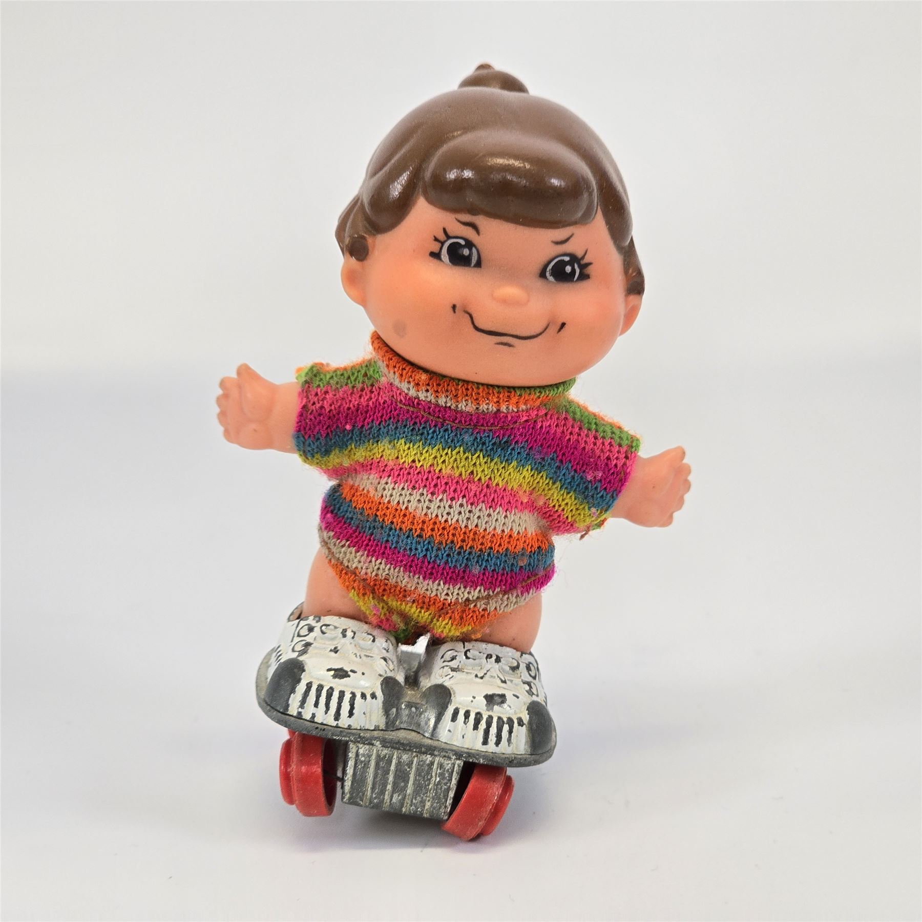 Overall nice condition with just slight wear. Plastics appear all intact. Missing dress, otherwise clothing intact. Wheel caps are missing, one wheel missing entirely.