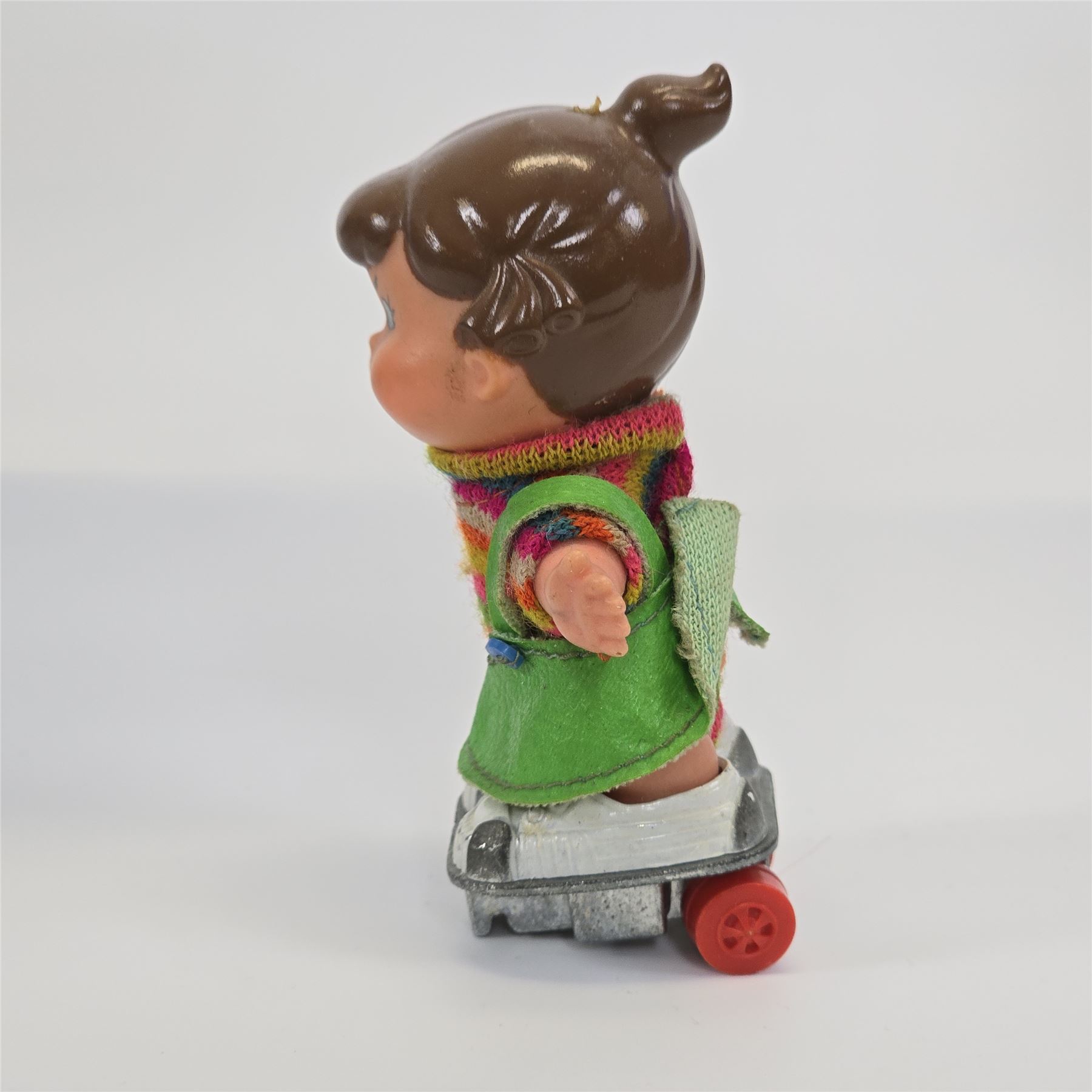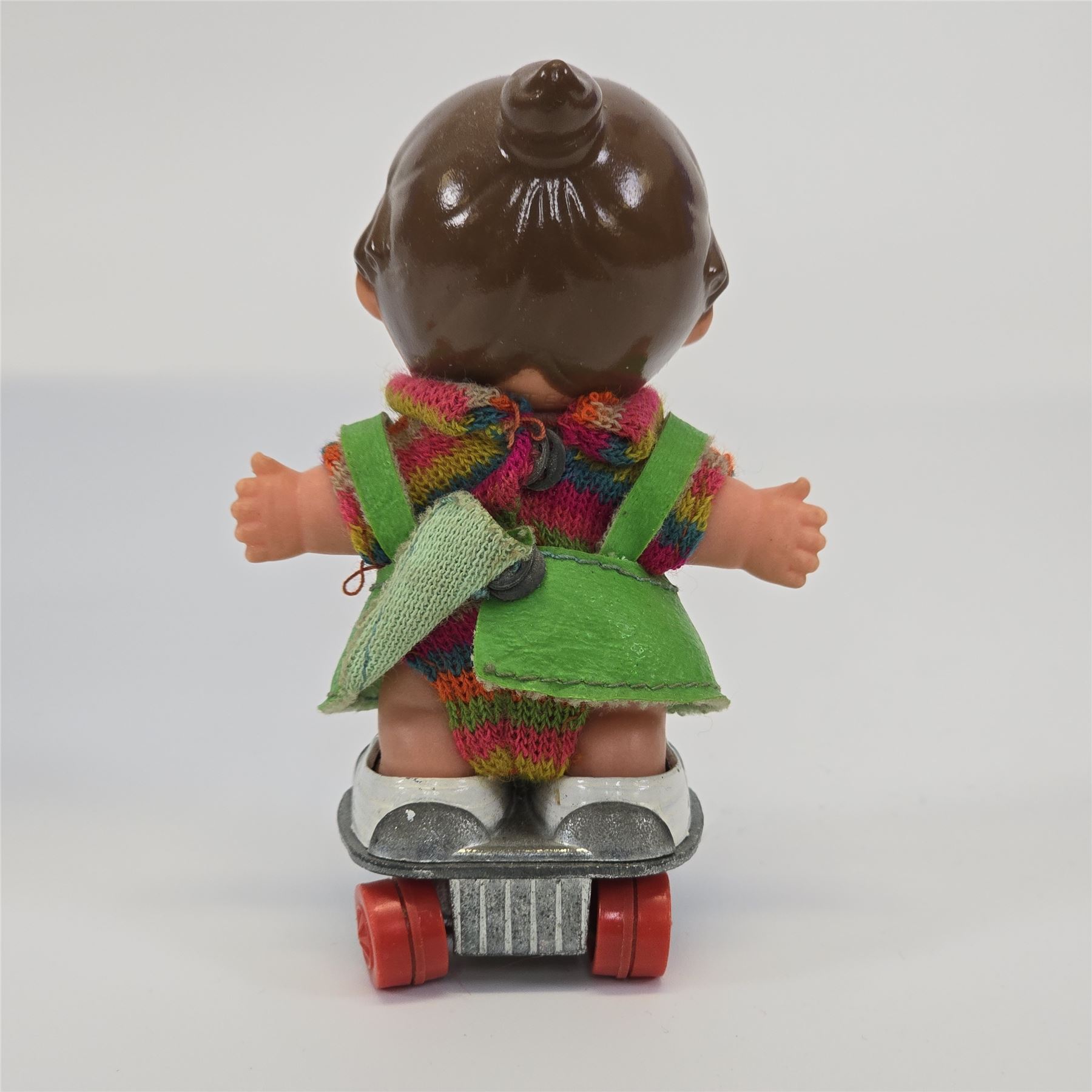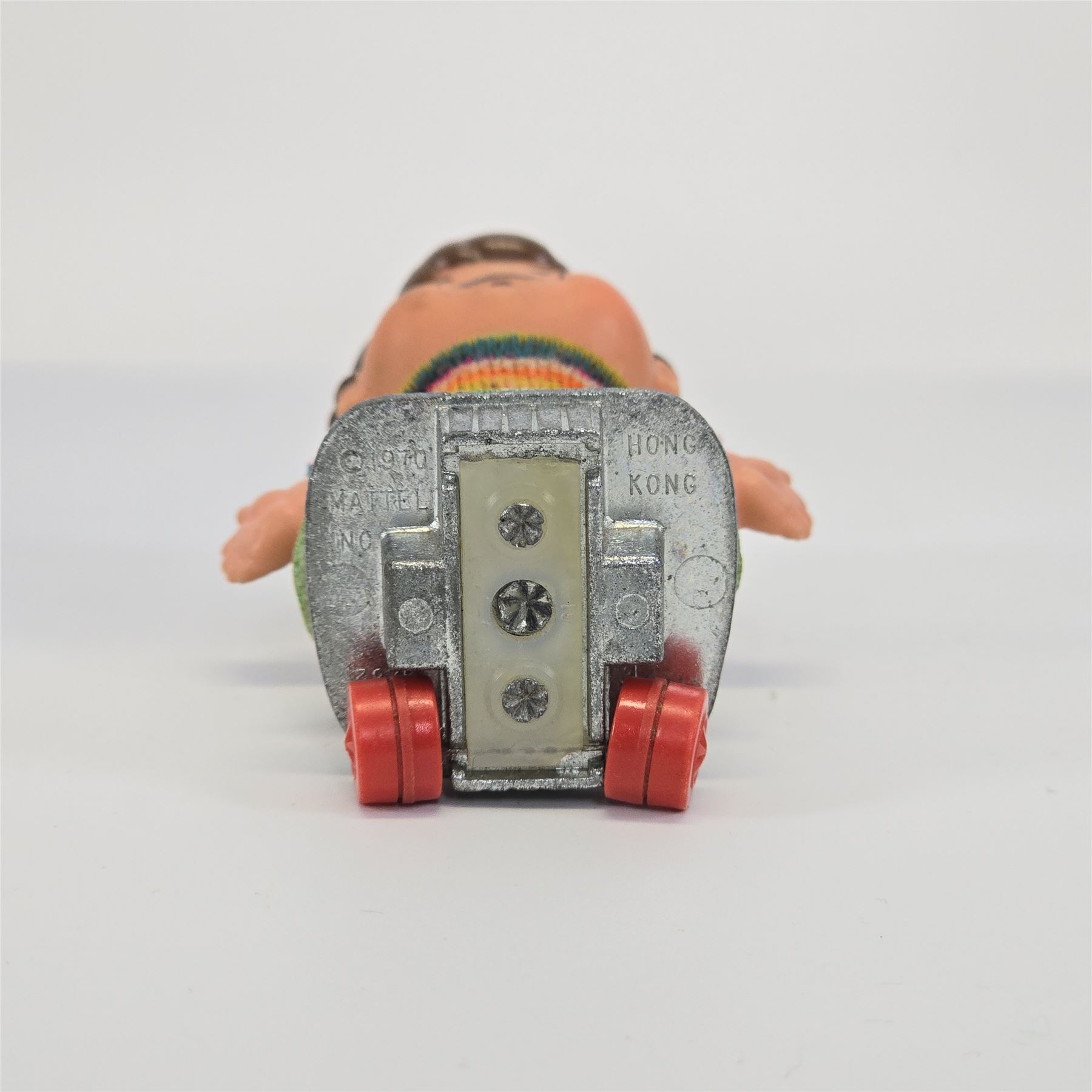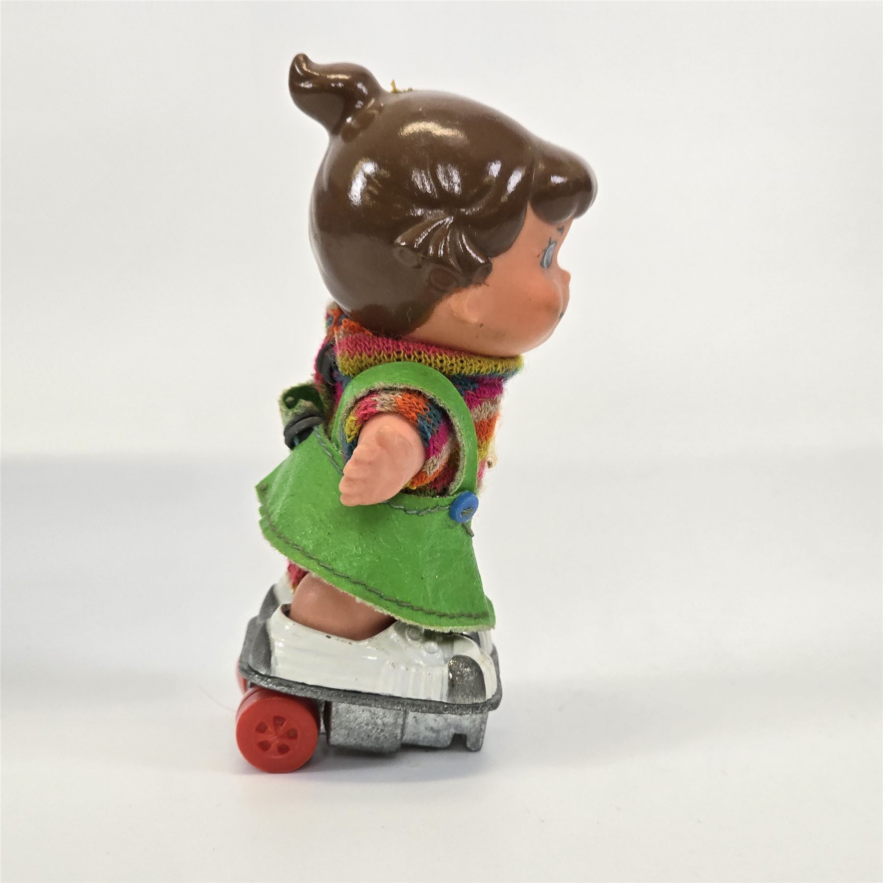 Overall nice condition with just slight wear. Plastics appear all intact. Clothing appears all intact, aside from bow missing. Wheels are in nice condition, one axle set is missing.