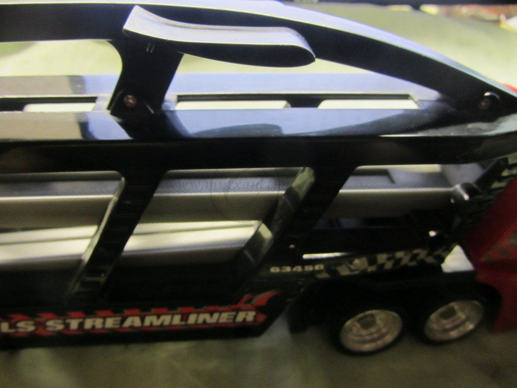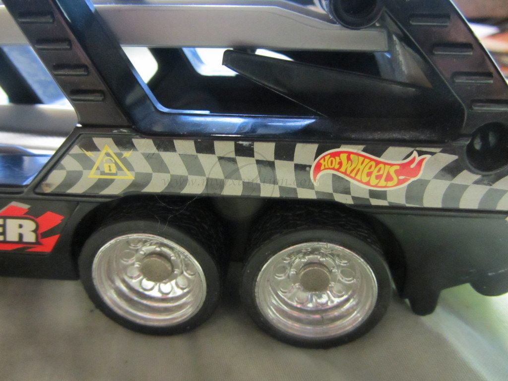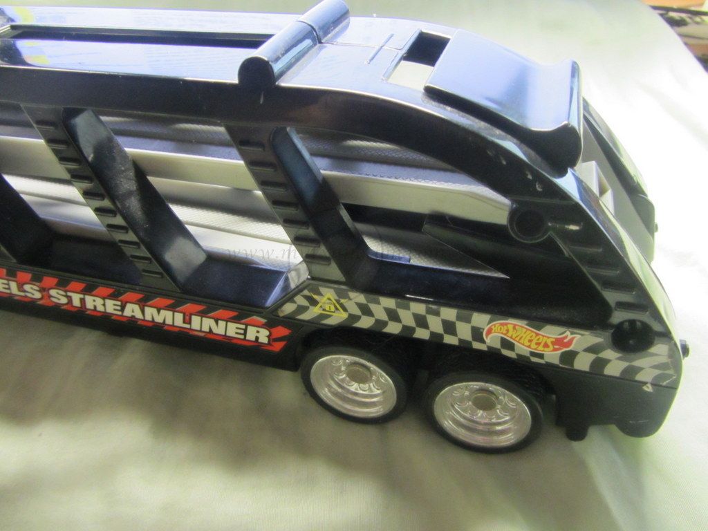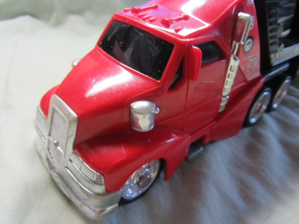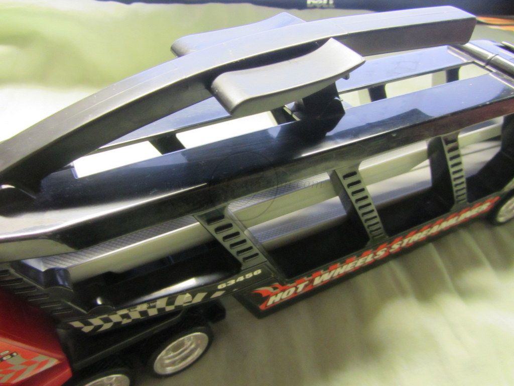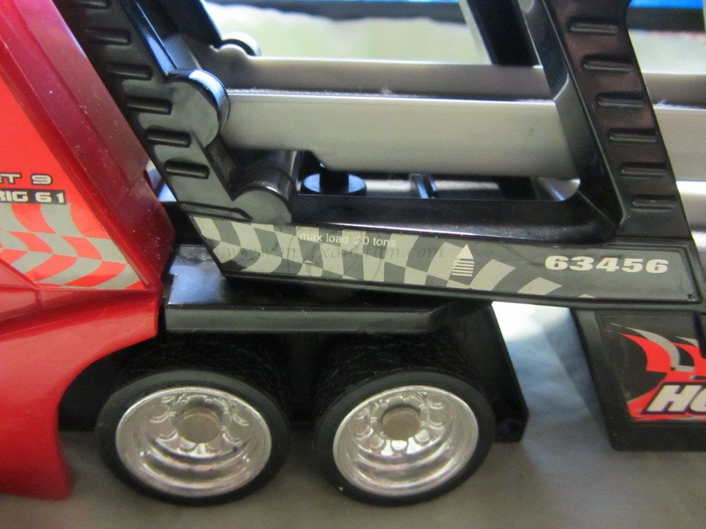 2000 Mattel Tractor Trailer Hotwheels Carrier. Mattel of course made this with hotwheels in mind, holds any standard die cast car. Holds 8-10 cars depending upon size. Used in very exceptable condition. NOTE: There is slight scuffing on the hood, generally overall from hours of play and the chrome is worn in places (see images for futher details).