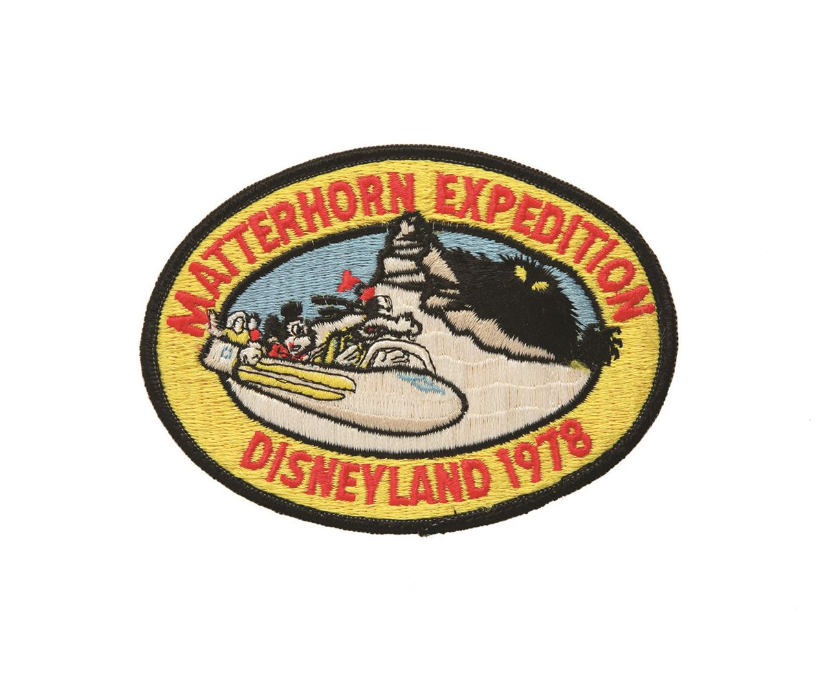 (Disneyland, 1978) Cloth embroidered Matterhorn Expedition patch worn by cast-members for the 1978 refurbishment of the Matterhorn. Measures 5” x 3.5” and is in very good condition.