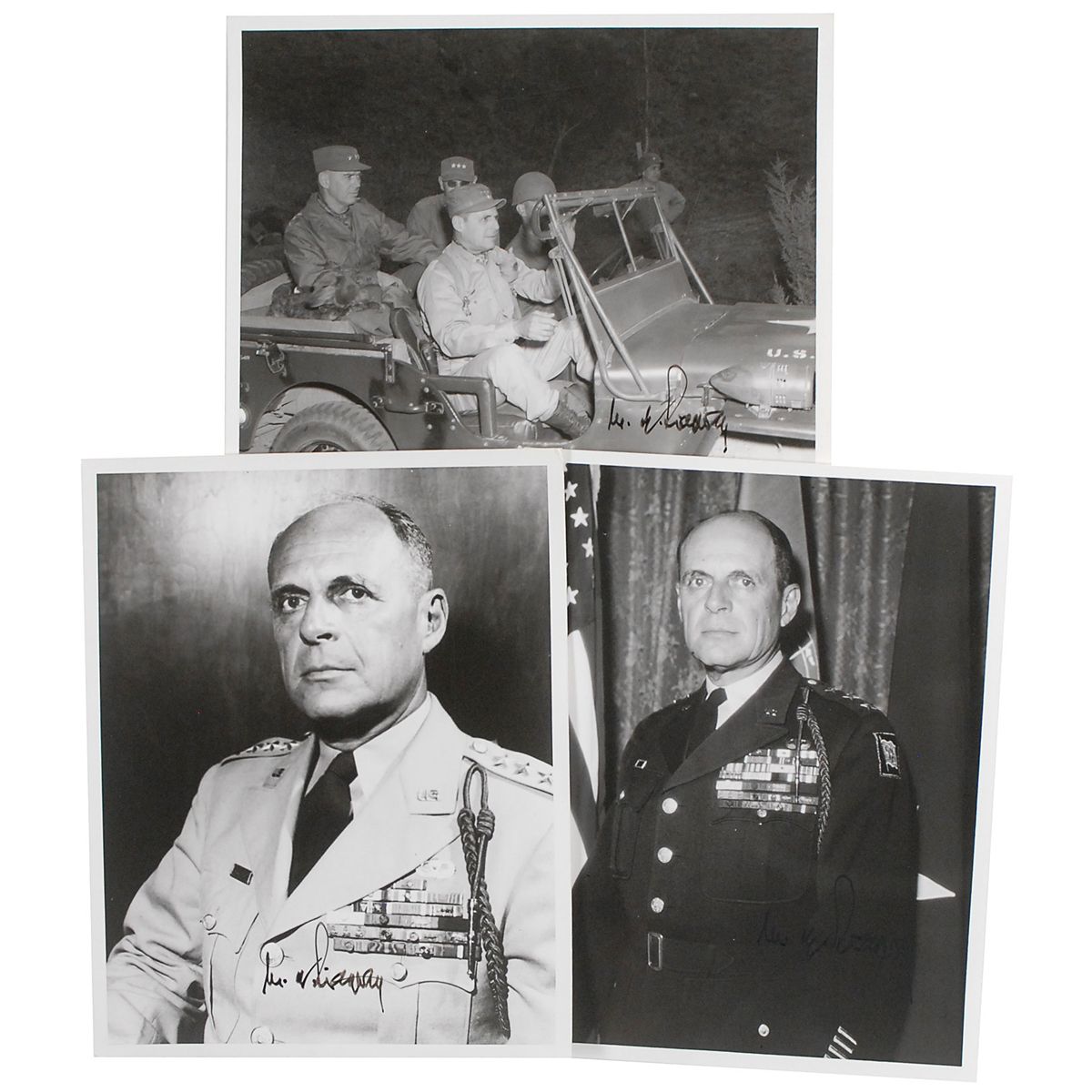 Three glossy photos, two 8 x 10 and one 10 x 8, each signed in black felt tip, “M. W. Ridgway.” In fine condition.