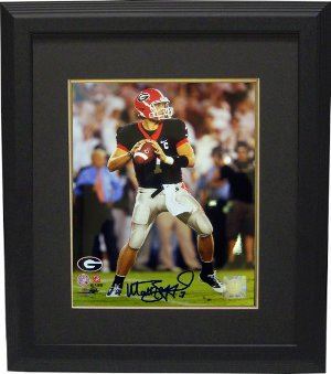 Matthew Stafford was named the Offensive MVP of the 2006 Chick-fil-A Bowl, named All-America in 2008 by Pro Football Weekly, named to Second-team All-SEC in 2008 and was MVP of the 2009 Capital One Bowl. Matthew Stafford has hand autographed this Georgia Bulldogs 8x10 Photo. Custom White Mat and Premium Black Frame as shown. Stafford Hologram and Certificate of Authenticity from Athlon Sports.