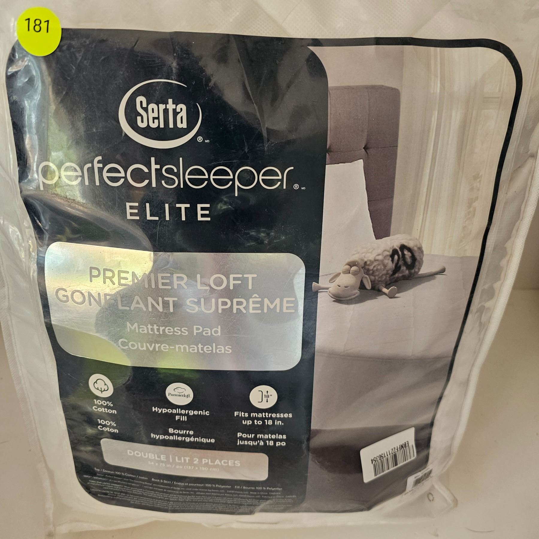 Serta, Prefectsleeper Elite, Double, Premier Loft Mattress Pad, 100% Cotton, Hypoallergenic, Shelf Pull, New Condition Sell's For $150.00