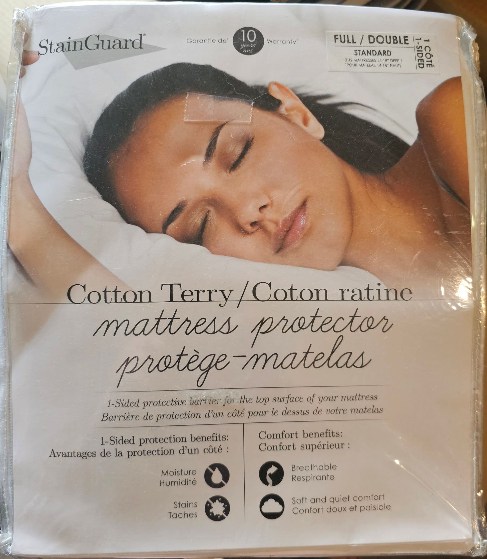 Stain Guard Cotton Terry Mattress Protector, King Size, 1 Sided Protection, Moisture, Stains, Breathable, New Condition