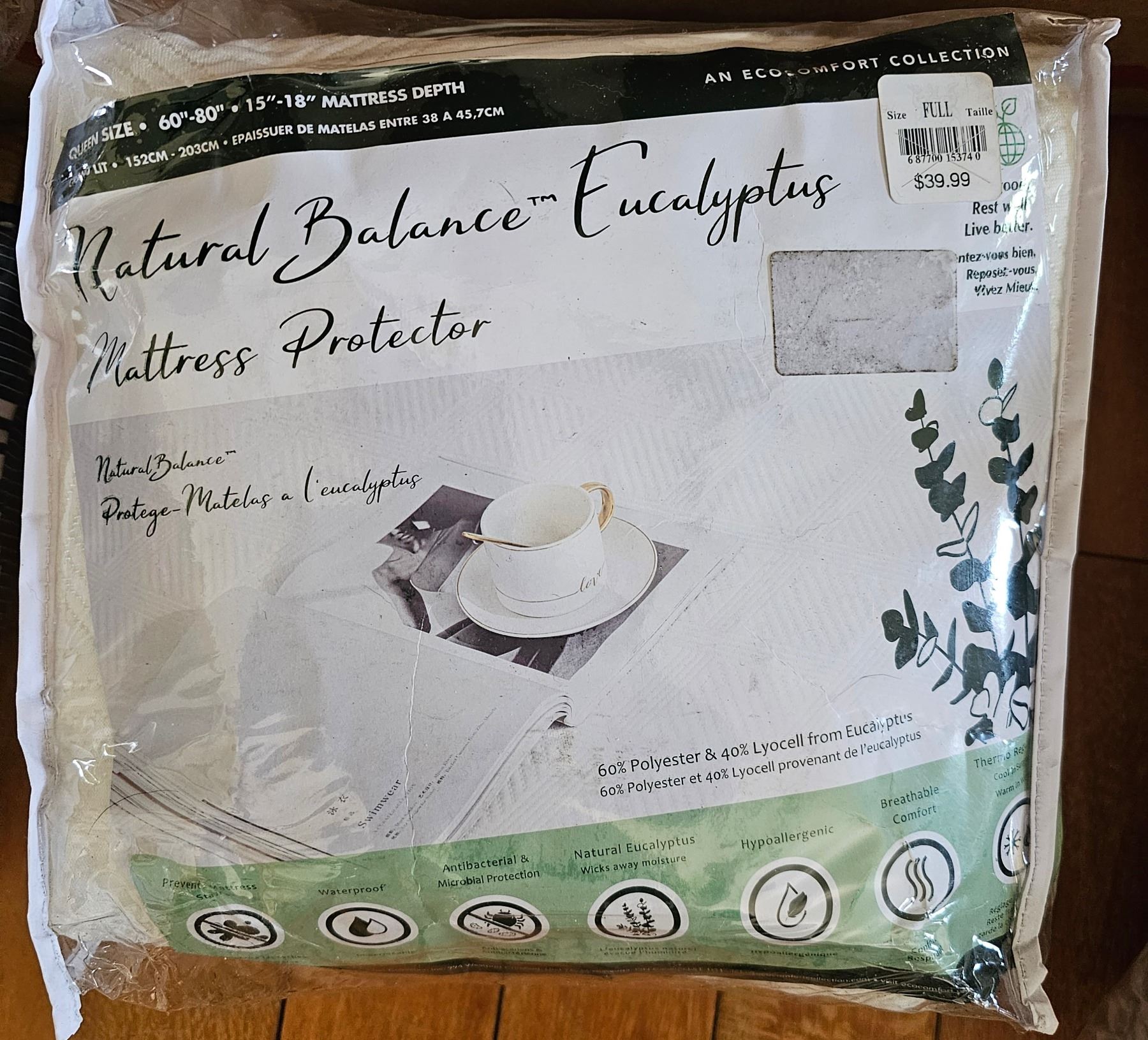 Natural Balance Eucalyptus, Queen Mattress Protector, New Condition