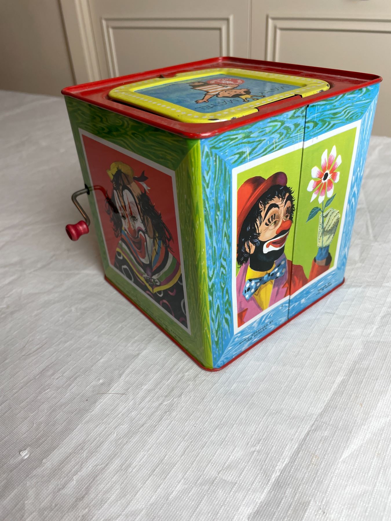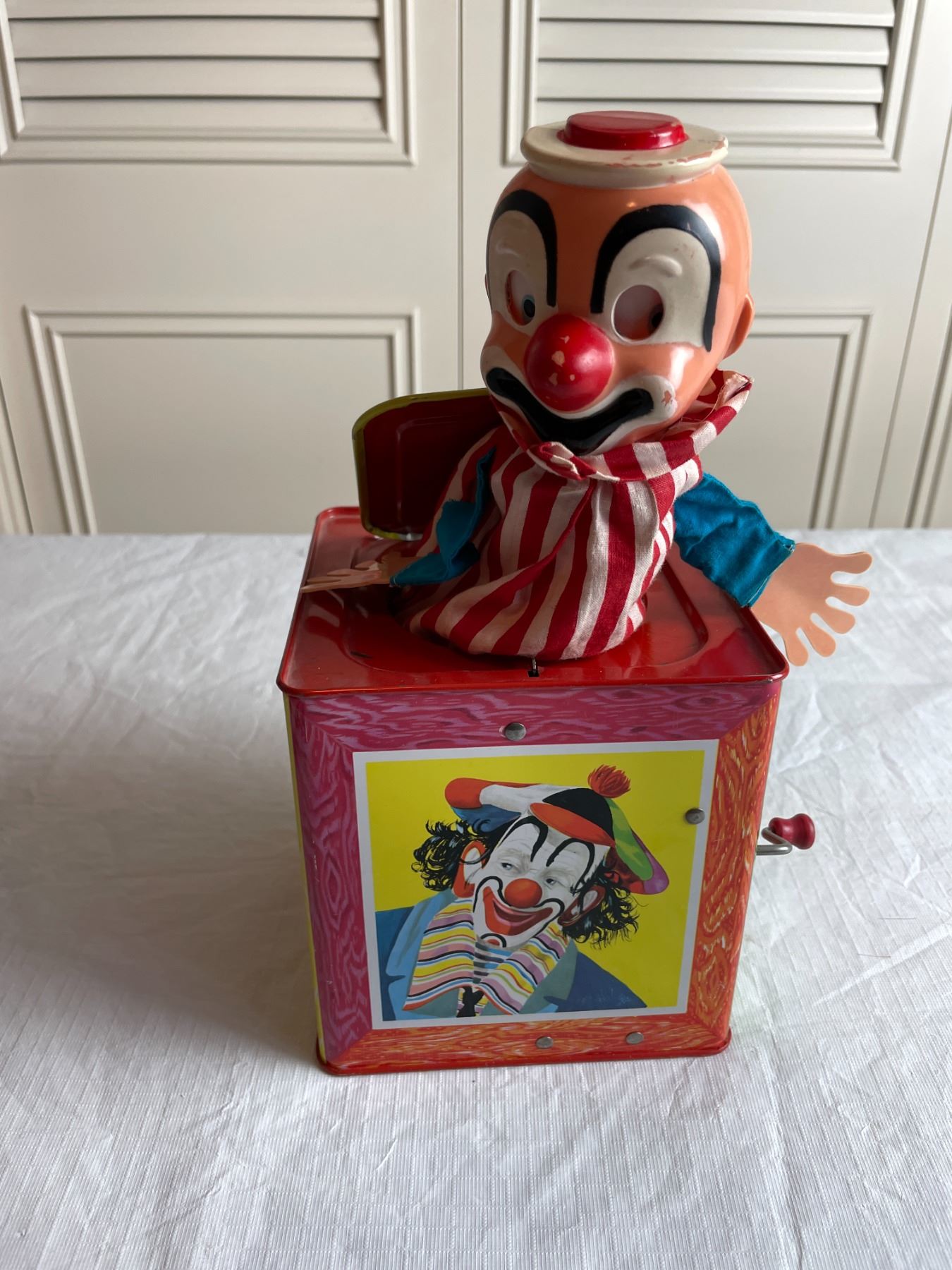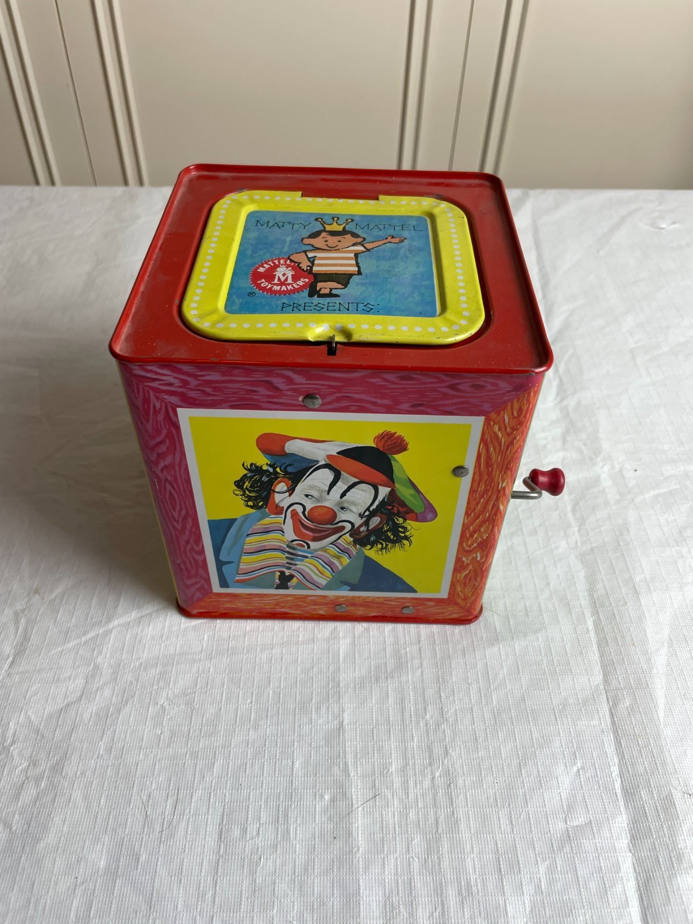 1961 Vintage Matty Mattel Jack in the Box Popup with Googly Eye Clown Tin