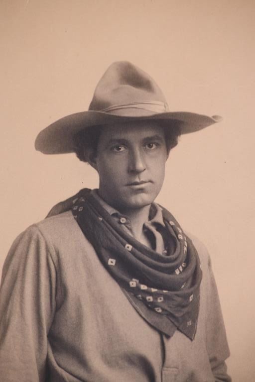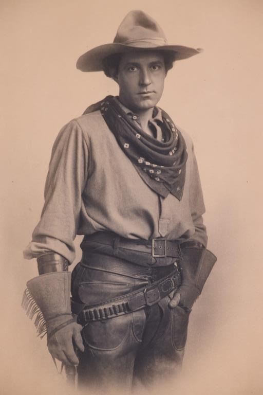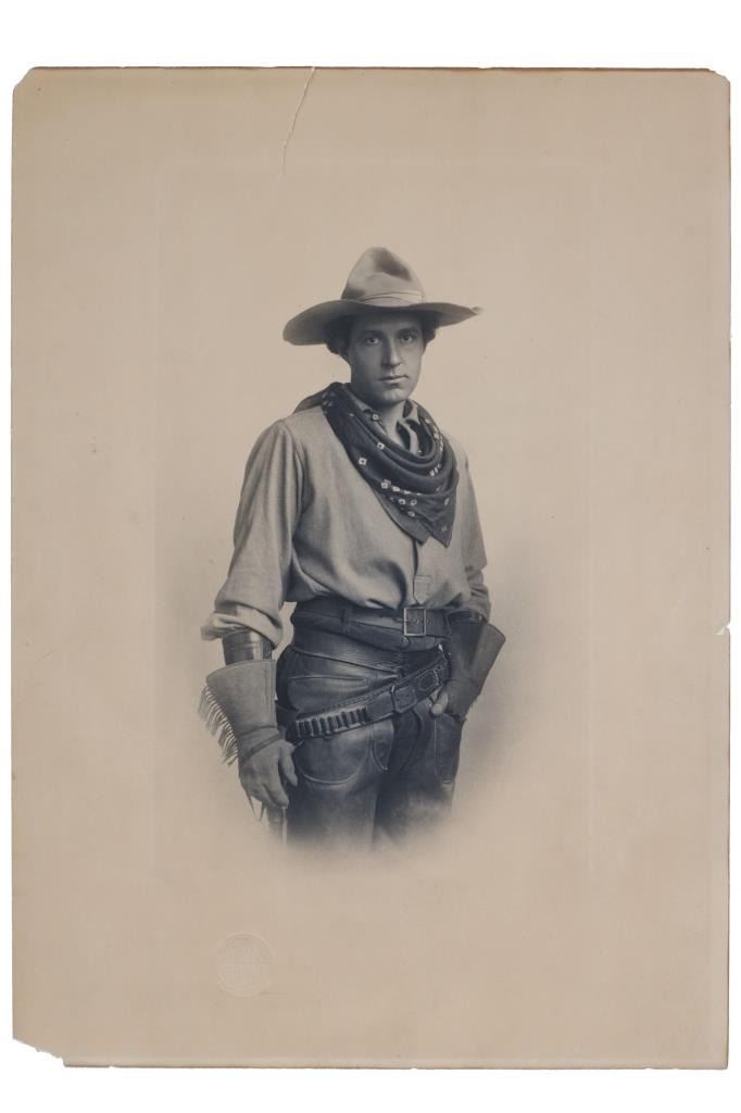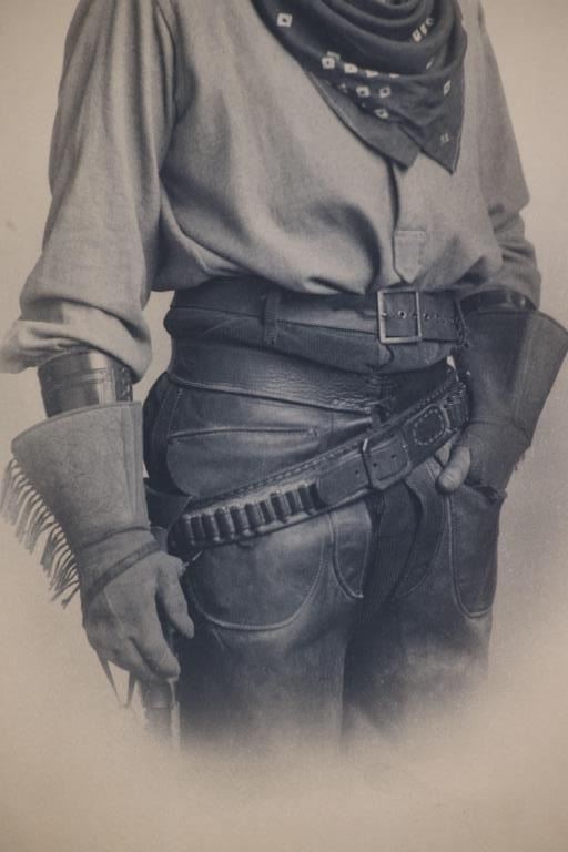 Featured in this lot is this original, embossed etching of an original photo taken by Matzene Studio in the late 19th / early 20th century. This is of famous cowboy Vida Vandeveer, stamped and signed / written on back. Matzene Studio was the name given to three art photography galleries founded by Danish "Count" Jens Rudolph Matzene. Richard Gordon Matzene, also known as the "Count" Matzene, was an early 20th-century photographer who operated studios in Chicago, New York, and Los Angeles. He was known for his portraits of high-society figures, including celebrities, wealthy individuals, and politicians. His Chicago studio was established around 1900, and he continued to work there until 1937, though he also operated studios in other cities during that time. This lithograph photo shows a young man in western attire looking directly towards the viewer. He is wearing a belt with shell slots, a holster, a bandana around his neck, work gloves and a cowboy hat. The lithograph features an embossed stamp in the bottom left hand corner reading, "Matzene Studio / Chicago". It shows good condition overall with slight wear present from its age and use over the years, but no major signs of damage is noted. Small tear present at the top and torn off corner in the bottom left is present. The piece measures 13 1/2" L x 9 3/4" W and weighs under 6 ounces.