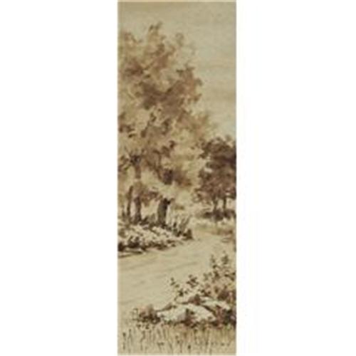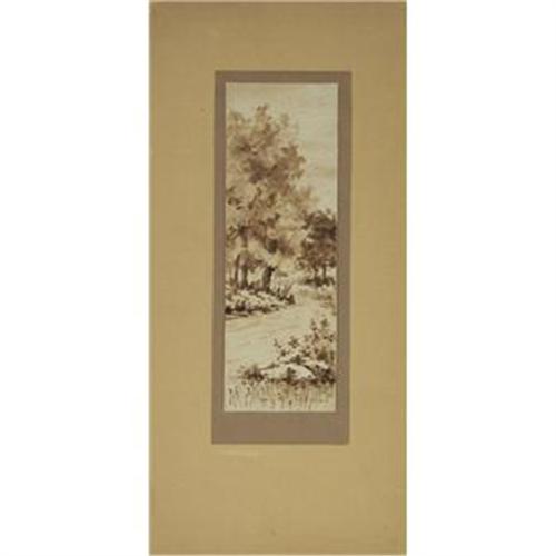 Maud A. Leach (1870-1927) Watercolor, Landscape, 8 7/8" x 3", unsigned