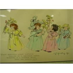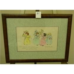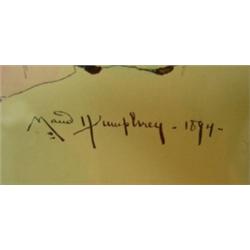 Hand colored book plate.  Maude Humphrey.  Signed in print and dated 1894.  Grain painted frame.  Not a reproduction.  Original piece.  Image 6-1/2" x 10-1/2".  Overall 13" x 17".  Maude was the mother of Humphrey Bogart.