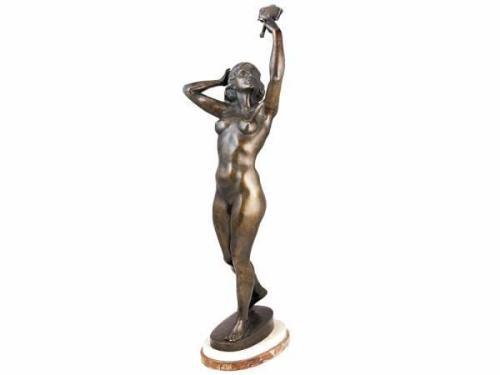 Cast bronze with patina on marble base. Damaged on one finger. Signed: Maugsch. Size: 80 cm