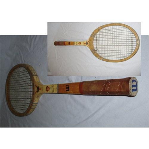 Maureen Catherine Connolly, Wilson Racket, She was a 1951 US Champion, and had 3 wins in Wimbledon, by age 19. She was put into the tennis hall a fame in 1969. Tennis was popular during this period and Connolly was love by the public. This racket will be shipped with a spring loaded brace. It is in used condition, with the tip slightly worn. There is some crazing in the lacquer. The leather tape on the grip shows some discoloration. This racket will make a fine addition to anyone?s collection.