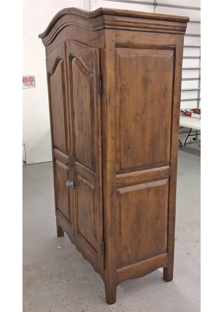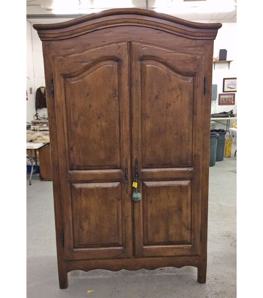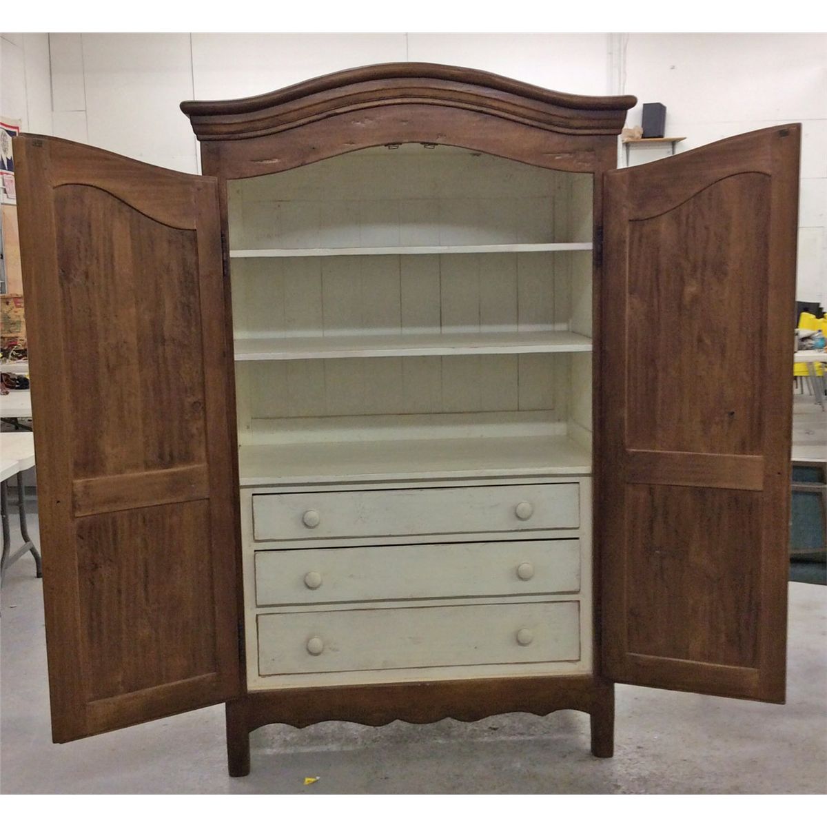 Maurice Armoire, The Farm House Collection, Style #4000048. 48 inch wide x 24 inch deep x 84 inch high. Normandy finish stain, No Motif, Three drawers, Two Adjustable shelves, full door, Doue White Interior