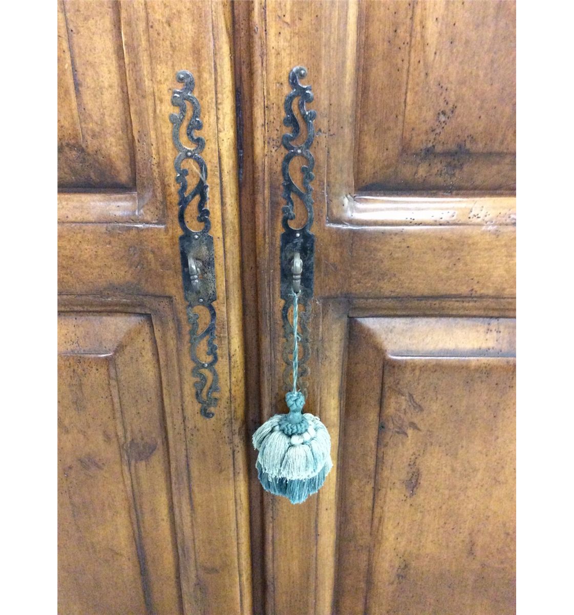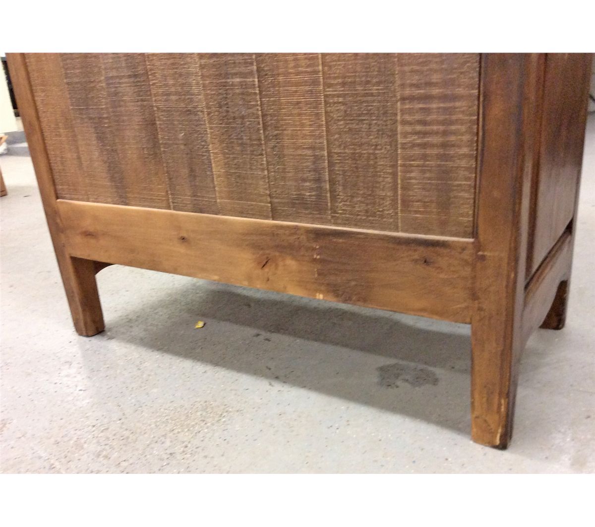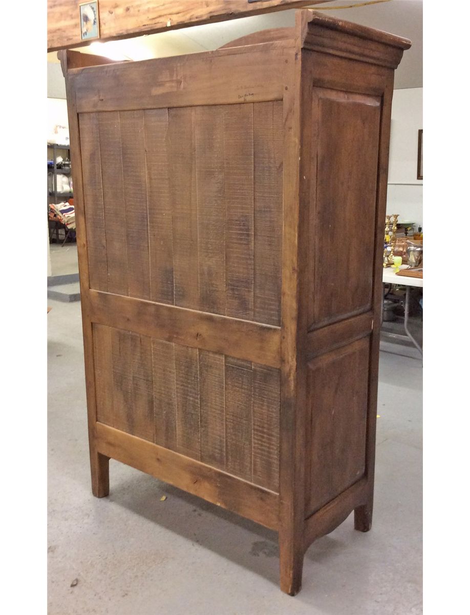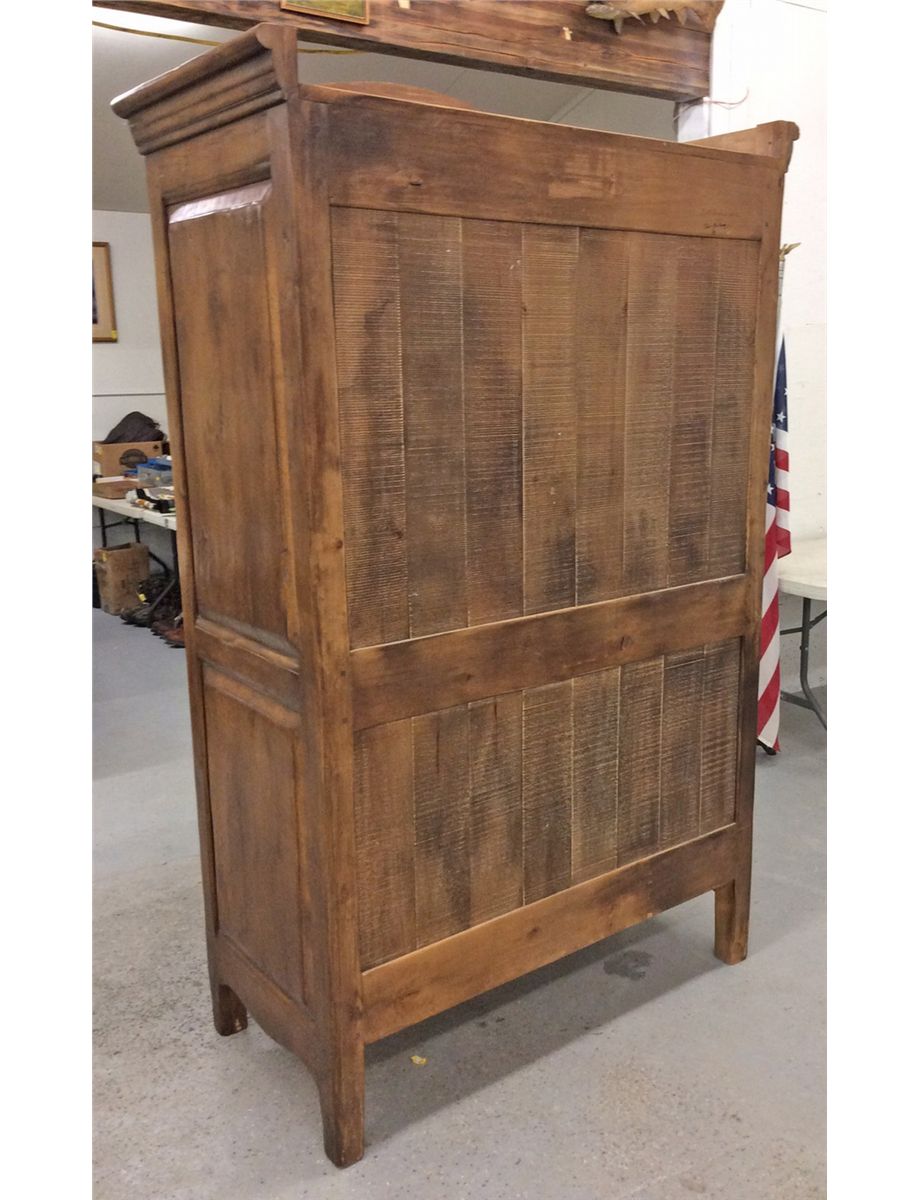 Maurice Armoire, The Farm House Collection, Style #4000048. 48 inch wide x 24 inch deep x 84 inch high. Normandy finish stain, No Motif, Three drawers, Two Adjustable shelves, full door, Doue White Interior