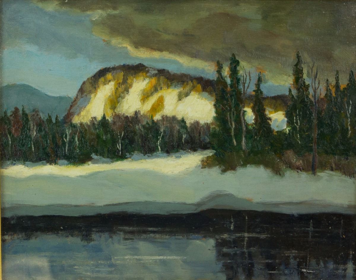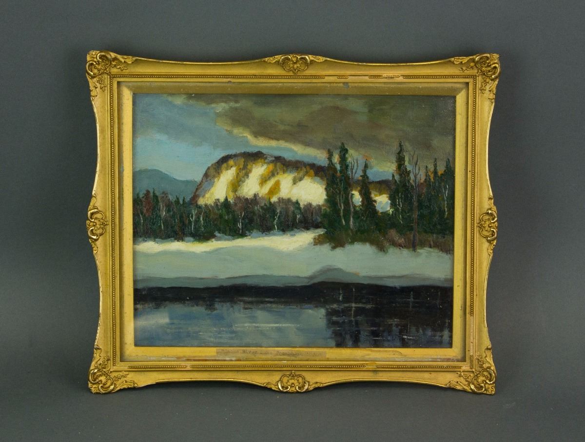 Cache River Lake Tremblante; oil on board with frame; signed M. Cullen on the lower right corner; 19.5 cm × 24.5 cm