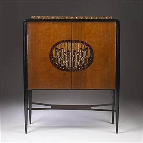 Maurice Dufrene, Attribution cabinet France, c. 1915 tiger maple, ebonized wood, mother-of-pearl 46 w x 18 d x 55.75 h inches Two doors conceal two shelves. Provenance: Walter P. Chrysler, Jr. Sotheby's New York, June 16, 1989, The Estate of Walter P. Chrysler , Jr.: Important Art Nouveau and Art Deco, lot 346 Private collection, Chicago