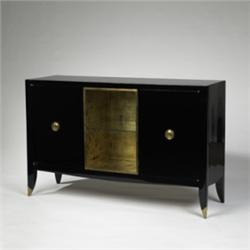 Maurice Jallot, attribution cabinet France, c. 1930 ebony veneer, brass, glass 59"w x 18"d x 37"h Provenance: Galerie Gam, Paris