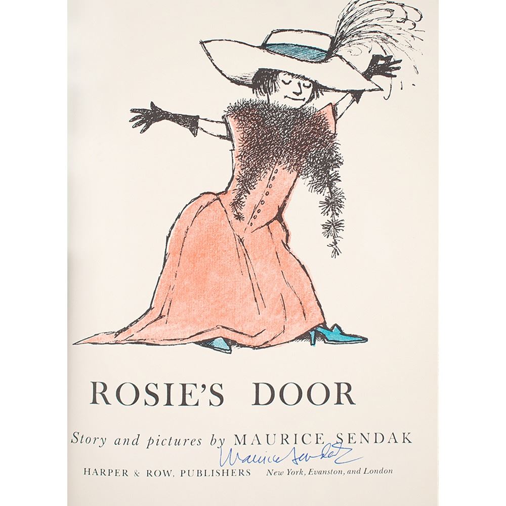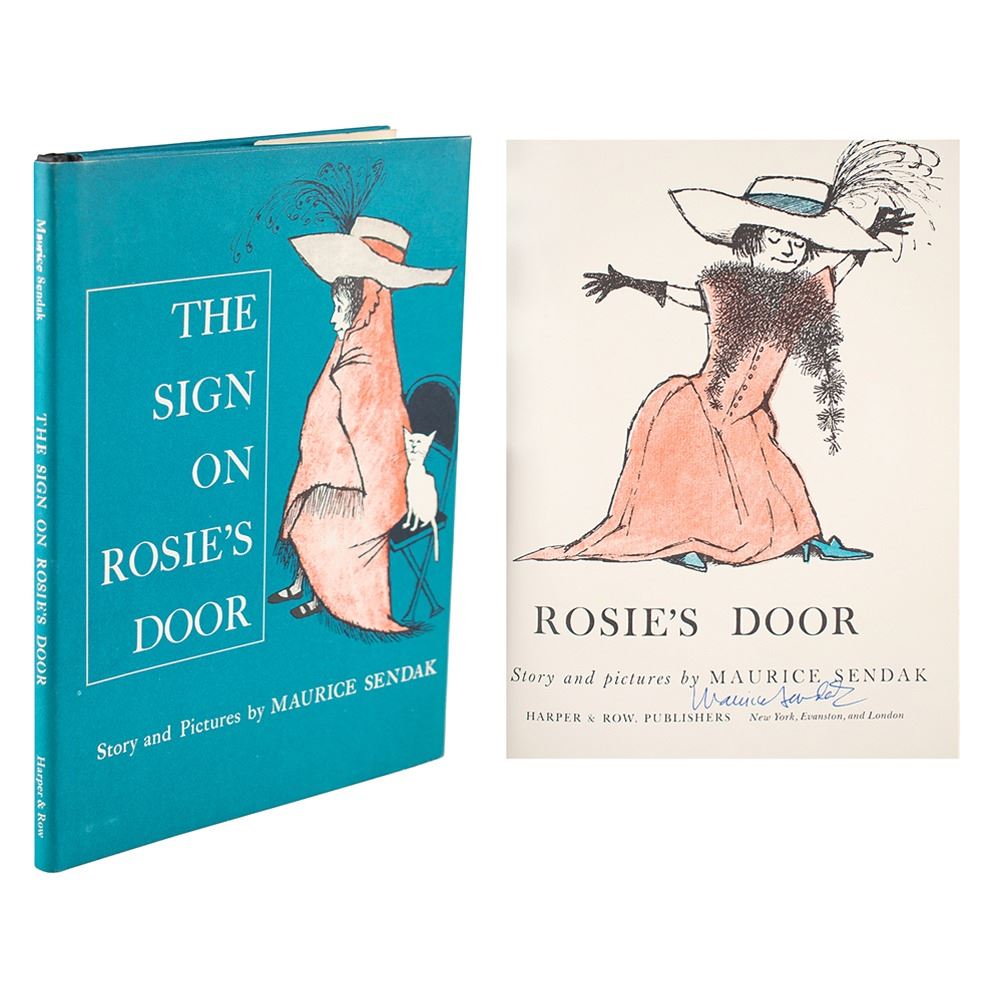 Signed book: The Sign on Rosie's Door. First edition. NY: Harper & Row, 1960. Hardcover with dust jacket, 7 x 9. Signed on the title page in blue felt tip by Maurice Sendak. In fine condition, with a price-clipped jacket.