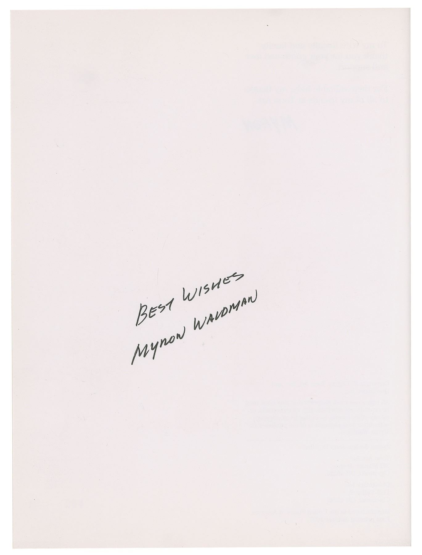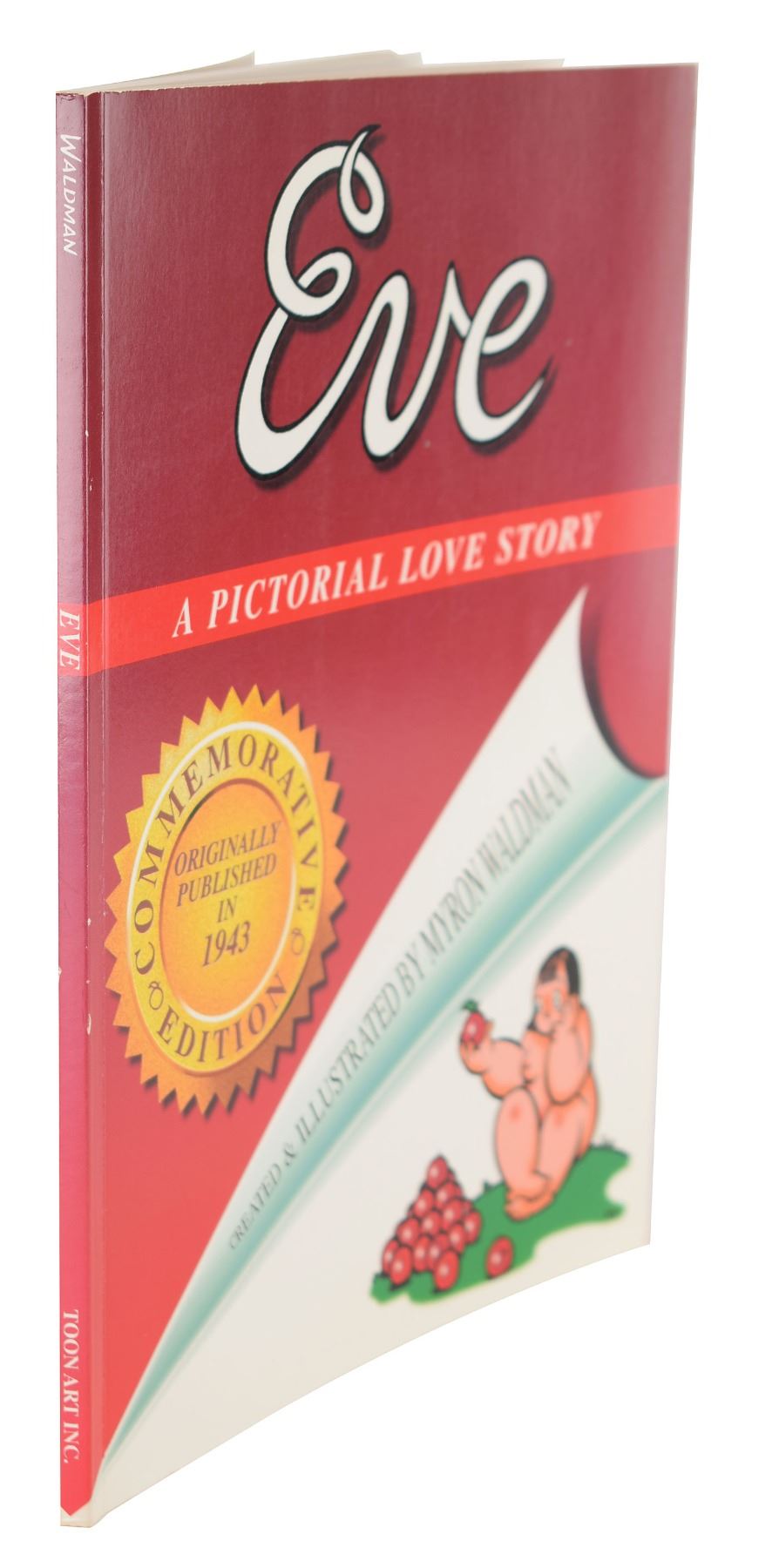 Signed book: Eve: A Pictorial Love Story. Limited commemorative edition, numbered 254/1500. Cincinnati, OH: Toon Art, Inc., 1997. Softcover, 8.5 x 11, 80 pages. Signed opposite the title page in black ink, "Best Wishes, Myron Waldman." A colorful printed sericel of the nude Eve is contained inside. In fine condition.