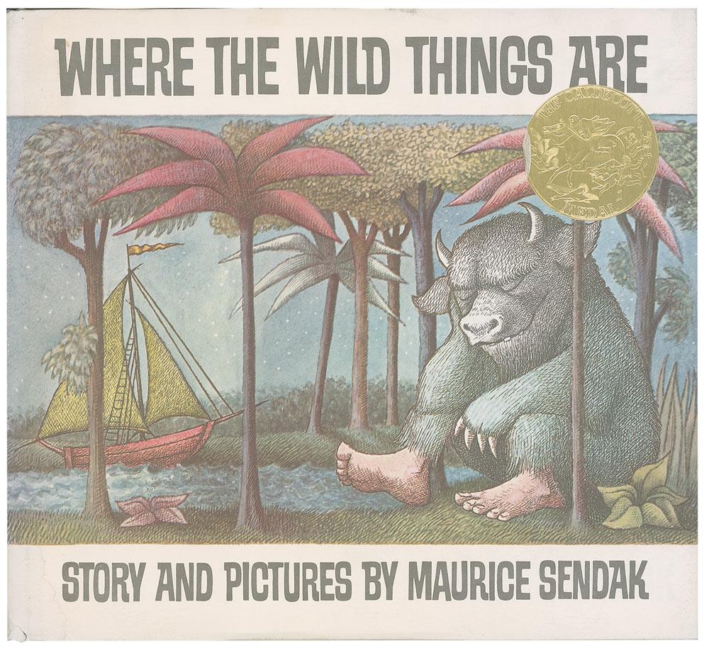 Signed book: Where the Wild Things Are. Later Printing. NY: Harper and Row, 1963. Hardcover, 10 x 9.25. Signed in black ink on the half-title page. Signed on the title page in blue ballpoint, “Maurice Sendak, Merry Christmas 1985!” In fine condition, with the dustjacket showing a couple small tears and some mild toning and damp staining. A promotional Caldecott Medal label is affixed to the front of the dustjacket as well.