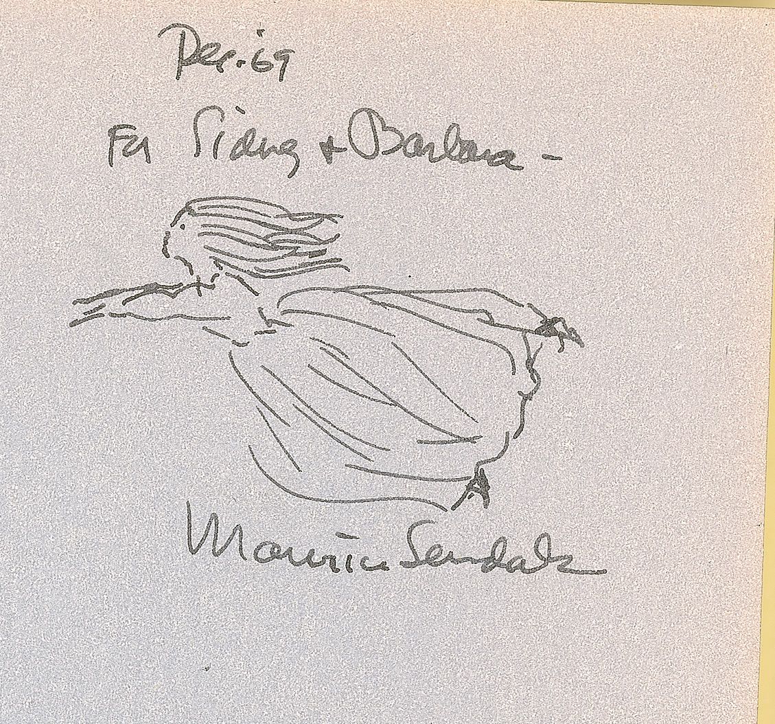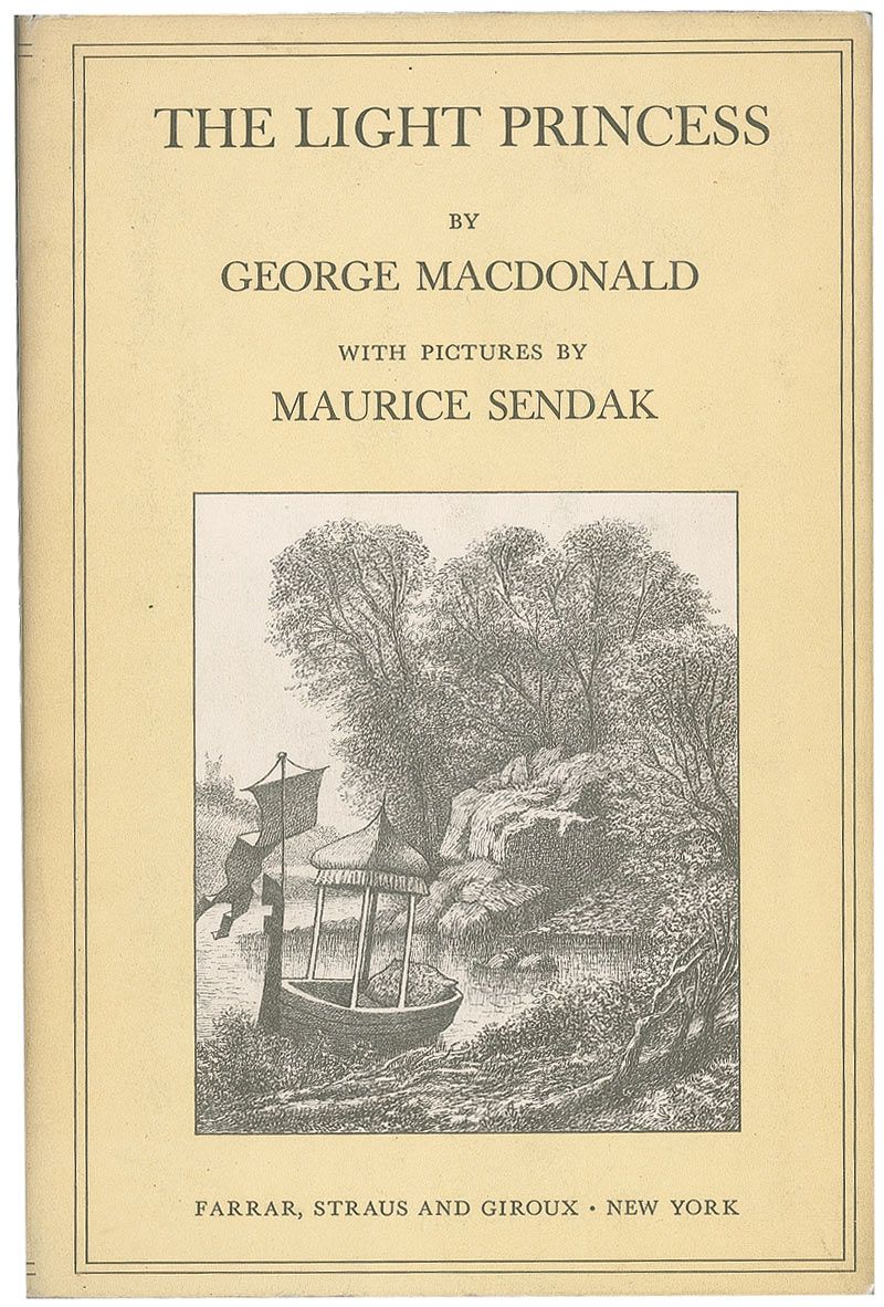 Signed book: The Light Princess. First edition, later printing. NY: Farrar, Strauss and Giroux, 1969. Hardcover with dustjacket, 5 x 7.5, 110 pages. Signed and inscribed on the first free-end page, “Dec. 69, For Sidney & Barbara—Maurice Sendak,” adding a great original sketch of the Light Princess. In fine condition, with a bit of mild toning to signed page and some scattered light wear and soiling to dustjacket. The recipients of the book were Sendak’s professional framers of his works and personal art collection. A nice sketch of one of his lesser known works.