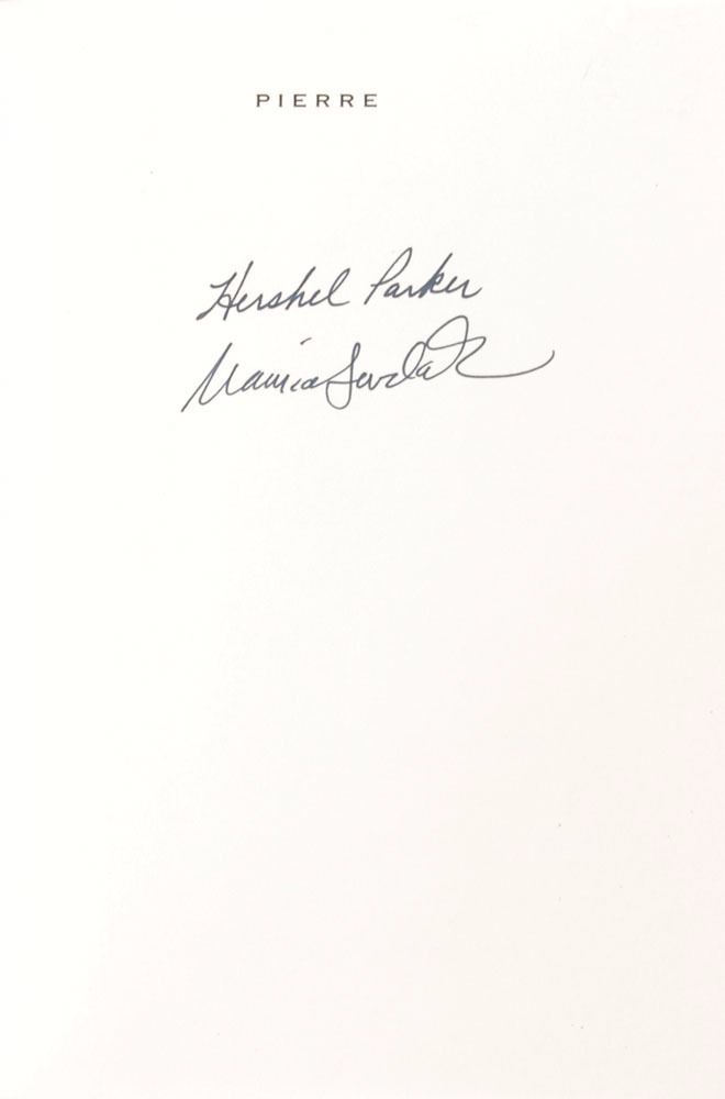 Signed book: Herman Melville's Pierre or The Ambiguities. First edition. NY: HarperCollins. Hardcover with dust jacket, 5.75 x 7.5, 449 pages. Signed on the half-title page in black felt tip by illustrator Maurice Sendak and editor Hershel Parker. In fine condition.