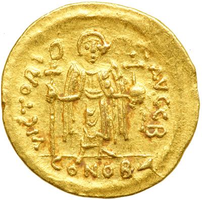 Maurice Tiberius, 582-602. Gold Solidus (4.42 g) minted at Constantinople
