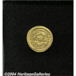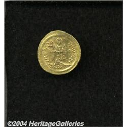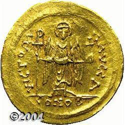 <B>Maurice Tiberius.</B></I> A.D. 582-602. AV solidus (21 mm, 4.39 g). Constantinople, A.D. 583-601. Helmeted and cuirassed facing bust, holding globus cruciger / Angel standing facing, holding long P-headed cross and globus cruciger; (Delta)/CONOB. DOC 5d; SB 478. Near XF. <BR><I>From the Geneva Collection.</B></I> <BR><BR><B>Important notice:</B> Heritage usually auctions material at the rate of 200-250 lots per hour. On some occasions eBay Live bid software or the Internet may not be able to keep up with the pace of the auction. We recommend placing a realistic absentee bid now as insurance to avoid disappointment. Occasionally the auctioneer may eliminate or reject an eBay Live bid, and the auctioneer may also reopen a lot after the close of the eBay live bidding (usually because we missed an audience bid), and may reject your bid even if it shows you as the winning bidder. By bidding via eBay Live, you agree that Heritage may award the lot to another bidder at its sole discretion under the circumstances described above or any other reasonable circumstances. Since eBay bids are not shown to us until we open the lot on the floor, we treat those bids just like floor bids. In most cases the floor responds before the eBay bid is presented to us, due to Internet lag time, so for consistency we have made it a policy that floor bids are always considered first over tie eBay live bids. Also please note that all Heritage lots purchased through eBay Live carry a 20% Buyer's Premium. Please make sure you read the Terms and Conditions before you bid.