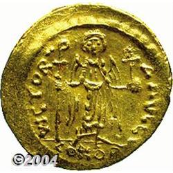 <B>Maurice Tiberius.</B></I> A.D. 582-602. AV solidus (21 mm, 4.48 g). Constantinople, A.D. 583-601. Helmeted and cuirassed facing bust, holding globus cruciger / Angel standing facing, holding long P-headed cross and globus cruciger; I/CONOB. DOC 5j; SB 478. VF. <BR><I>From the Geneva Collection.</B></I> <BR><BR><B>Important notice:</B> Heritage usually auctions material at the rate of 200-250 lots per hour. On some occasions eBay Live bid software or the Internet may not be able to keep up with the pace of the auction. We recommend placing a realistic absentee bid now as insurance to avoid disappointment. Occasionally the auctioneer may eliminate or reject an eBay Live bid, and the auctioneer may also reopen a lot after the close of the eBay live bidding (usually because we missed an audience bid), and may reject your bid even if it shows you as the winning bidder. By bidding via eBay Live, you agree that Heritage may award the lot to another bidder at its sole discretion under the circumstances described above or any other reasonable circumstances. Since eBay bids are not shown to us until we open the lot on the floor, we treat those bids just like floor bids. In most cases the floor responds before the eBay bid is presented to us, due to Internet lag time, so for consistency we have made it a policy that floor bids are always considered first over tie eBay live bids. Also please note that all Heritage lots purchased through eBay Live carry a 20% Buyer's Premium. Please make sure you read the Terms and Conditions before you bid.