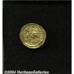 <B>Maurice Tiberius.</B></I> A.D. 582-602. AV solidus (21 mm, 4.48 g). Constantinople, A.D. 583-601. Helmeted and cuirassed facing bust, holding globus cruciger / Angel standing facing, holding long P-headed cross and globus cruciger; I/CONOB. DOC 5j; SB 478. VF. <BR><I>From the Geneva Collection.</B></I> <BR><BR><B>Important notice:</B> Heritage usually auctions material at the rate of 200-250 lots per hour. On some occasions eBay Live bid software or the Internet may not be able to keep up with the pace of the auction. We recommend placing a realistic absentee bid now as insurance to avoid disappointment. Occasionally the auctioneer may eliminate or reject an eBay Live bid, and the auctioneer may also reopen a lot after the close of the eBay live bidding (usually because we missed an audience bid), and may reject your bid even if it shows you as the winning bidder. By bidding via eBay Live, you agree that Heritage may award the lot to another bidder at its sole discretion under the circumstances described above or any other reasonable circumstances. Since eBay bids are not shown to us until we open the lot on the floor, we treat those bids just like floor bids. In most cases the floor responds before the eBay bid is presented to us, due to Internet lag time, so for consistency we have made it a policy that floor bids are always considered first over tie eBay live bids. Also please note that all Heritage lots purchased through eBay Live carry a 20% Buyer's Premium. Please make sure you read the Terms and Conditions before you bid.