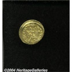 <B>Maurice Tiberius.</B></I> A.D. 582-602. AV solidus (21 mm, 4.48 g). Constantinople, A.D. 583-601. Helmeted and cuirassed facing bust, holding globus cruciger / Angel standing facing, holding long P-headed cross and globus cruciger; I/CONOB. DOC 5j; SB 478. VF. <BR><I>From the Geneva Collection.</B></I> <BR><BR><B>Important notice:</B> Heritage usually auctions material at the rate of 200-250 lots per hour. On some occasions eBay Live bid software or the Internet may not be able to keep up with the pace of the auction. We recommend placing a realistic absentee bid now as insurance to avoid disappointment. Occasionally the auctioneer may eliminate or reject an eBay Live bid, and the auctioneer may also reopen a lot after the close of the eBay live bidding (usually because we missed an audience bid), and may reject your bid even if it shows you as the winning bidder. By bidding via eBay Live, you agree that Heritage may award the lot to another bidder at its sole discretion under the circumstances described above or any other reasonable circumstances. Since eBay bids are not shown to us until we open the lot on the floor, we treat those bids just like floor bids. In most cases the floor responds before the eBay bid is presented to us, due to Internet lag time, so for consistency we have made it a policy that floor bids are always considered first over tie eBay live bids. Also please note that all Heritage lots purchased through eBay Live carry a 20% Buyer's Premium. Please make sure you read the Terms and Conditions before you bid.