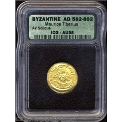 <TABLE cellSpacing=0 cellPadding=0 width="100%" bgColor=#000000 border=0><TBODY> <TR><TD width="100%"><TABLE cellSpacing=1 cellPadding=3 width="100%" border=0><TBODY><TR><TD width="100%" bgColor=#79735c><FONT face=arial color=#ffffff size=3><B>Description</B> </FONT></TD></TR><TR><TD width="100%" bgColor=#ffffff><FONT face=arial size=2><B>Maurice Tiberius.</B></I> A.D. 582-602. AV solidus (21 mm). Constantinople, A.D. 583-601. Diademed, cuirassed bust facing, wearing plumed helmet, holding globus cruciger and shield / Angel standing facing, holding long staff surmounted by a Christogram in right hand, globus cruciger in left; (Gamma)/CONOB. DOC 5c; SB 478. AU58 ICG. </FONT></TD></TR></TBODY></TABLE></TD></TR></TBODY></TABLE><BR><A name=PricesRealized></A><TABLE cellSpacing=0 cellPadding=0 width="100%" bgColor=#000000 border=0><TBODY><TR><TD width="100%"><TABLE cellSpacing=1 cellPadding=3 width="100%" border=0><TBODY><TR><TD width="100%" bgColor=#79735c><A name=PR><FONT face=arial color=#ffffff size=3><B>Previous Prices from Heritage Auctions</B> </FONT></A></TD></TR><TR><TD bgColor=#f6f6ed>No Prior Data Recorded </TD></TR><TR><TD bgColor=#ffffff><FONT face=arial size=1 ?>PLEASE NOTE: All prices realized reflect the final hammer price PLUS the buyer's premium in auctions that charge a buyer's premium. Each item has a notation at the top of the listing indicating whether that lot included a buyer's premium. Example: A item that sells with a final hammer price of $100 and a 20% buyer's premium will display with a price realized of $120. All information listed is intended to be as accurate as possible, but errors are possible. Please use this guide carefully and inform us of any inaccuracies. </FONT></TD></TR></TBODY></TABLE></TD></TR></TBODY></TABLE><BR><TABLE cellSpacing=0 cellPadding=0 width="100%" bgColor=#000000 border=0><TBODY><TR><TD width="100%"><TABLE cellSpacing=1 cellPadding=3 width="100%" border=0><TBODY><TR><TD width="100%" bgColor=#79735c colSpan=6><FONT face=arial color=#ffffff size=3><B>Price Guide*</B> </FONT></TD></TR><TR bgColor=#f6f6ed><TD align=middle><B>Grade</B> </TD><TD align=middle><B>Coin World<BR>(Trends)</B> </TD><TD align=middle><B>Numismedia<BR>Retail</B> </TD><TD align=middle><B>Numismedia<BR>Wholesale</B> </TD><TD align=middle><B>Coin<BR>Universe</B> </TD><TD align=middle><B>Heritage<BR>Value Index</B> </TD></TR><TR bgColor=#ffffff><TD colSpan=6><FONT size=1>*All information listed is intended to be as accurate as possible, but errors are possible. No item may be returned or refused based on this information which is provided as a service to our customers. You should contact each pricing source directly to determine the accuracy of this information. </FONT></TD></TR></TBODY></TABLE></TD></TR></TBODY></TABLE><BR><TABLE cellSpacing=0 cellPadding=0 width="100%" bgColor=#000000 border=0><TBODY><TR><TD width="100%"><TABLE cellSpacing=1 cellPadding=3 width="100%" border=0><TBODY><TR><TD width="100%" bgColor=#79735c><FONT face=arial color=#ffffff size=3><B>Population Guide</B> </FONT></TD></TR><TR bgColor=#ffffff> Important notice: Heritage usually auctions material at the rate of 200-250 lots per hour. On some occasions eBay Live bid software or the Internet may not be able to keep up with the pace of the auction. We recommend placing a realistic absentee bid now as insurance to avoid disappointment. Occasionally the auctioneer may eliminate or reject an eBay Live bid, and the auctioneer may also reopen a lot after the close of the eBay live bidding (usually because we missed an audience bid), and may reject your bid even if it shows you as the winning bidder. By bidding via eBay Live, you agree that Heritage may award the lot to another bidder at its sole discretion under the circumstances described above or any other reasonable circumstances. Also please note that all Heritage lots purchased through eBay Live carry a 20% Buyer's Premium. Please make sure you read the Terms and Conditions before you bid.</TD></TR></TBODY></TABLE></TD></TR></TBODY></TABLE>