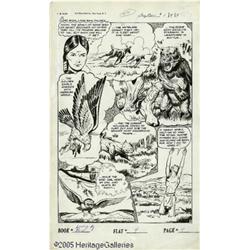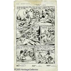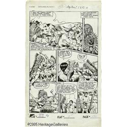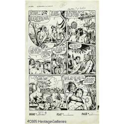 <B>Maurice Whitman - Long Bow #1, Complete 12-page Story "Blackfoot Medicine is Good!" Original Art (Fiction House, 1951).</B></I> Long Bow, the Indian boy, and his rival, Foxfoot, face a deadly cougar and worst of all, a band of enemy Arapahoes in their tribal war games. This twelve-pager is the first story for the first <B>Long Bow</B></I> comic book by the artist who also drew the cover, Maurice Whitman. Paying close attention to the dress and markings of the Blackfoot and Arapaho tribes, Whitman turns out a tale of action with a underlying respect for the world of native America. The pages have an image area of 12" x 18". Most every page has some edge wear and editorial notes written in blue pencil, and some overall aging apparent, otherwise they average in Very Good condition. 12 Original Art