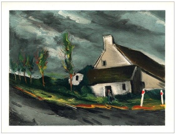 Maurice de Vlaminck "La Maladrerie under Snow" lithograph - Medium: lithograph. This lithograph (after the Vlaminck painting) was pulled in Paris in 1958 by the legendary Mourlot atelier, and published by Andre Sauret in an edition of 2000. A nice impression, as can be expected of Mourlot. Size: 9 1/2 x 12 1/4 inches (total sheet) - Professionally Framed & Matted - Comes With Certificate - -