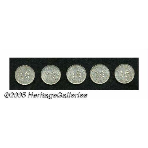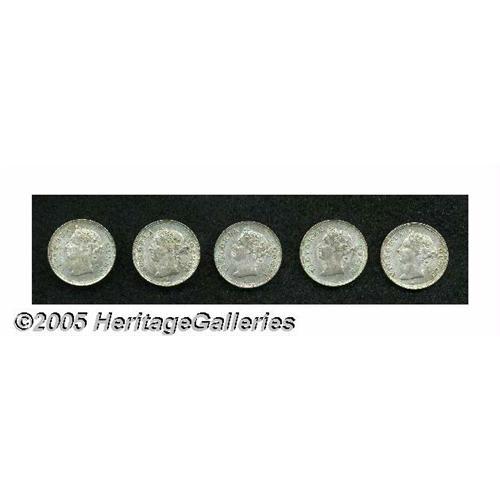 <B>Victoria 10 Cents 1889H, </B></I>KM10.1, five examples, all nice lightly toned UNC. <B>Sold as is, no return lot.</B></I>