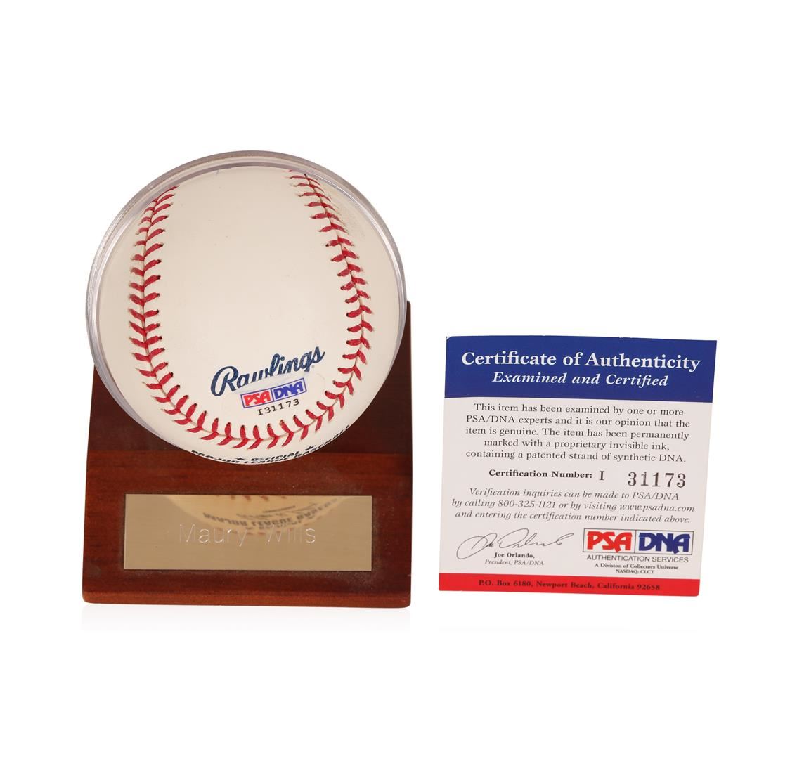 One Maury Wills Autographed Baseball. Comes with Certificate of Authenticity.