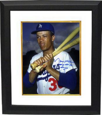 Maury Wills played shortstop and was a switch-hitting batter who played most prominently with the Los Angeles Dodgers (1959–66, 1969–72). He was an essential component of the Dodgers' championship teams in the mid-1960s, and deserves much credit for reviving the stolen base as part of baseball strategy. In 14-seasons career, Wills batted .281 with 20 home runs, 458 runs batted in, 2134 hits, 1067 runs, 177 doubles, 71 triples, and 586 stolen bases in 1942 games. Maury Wills has hand autographed this Los Angeles Dodgers 8x10 Photo with MVP NL '62. Certificate of Authenticity from Athlon Sports Collectibles. Custom White Mat and Premium Black Color Framed as shown.