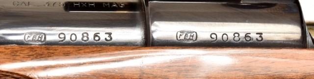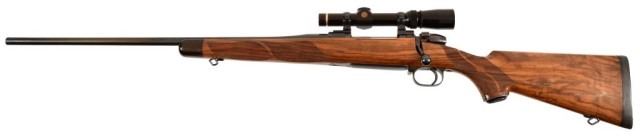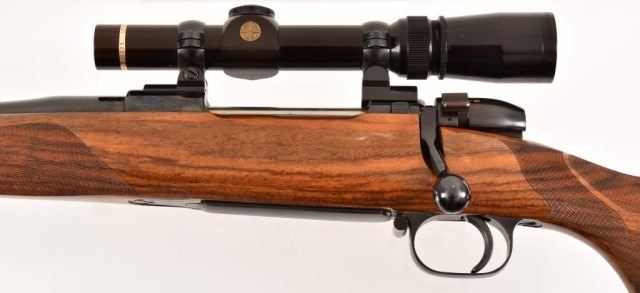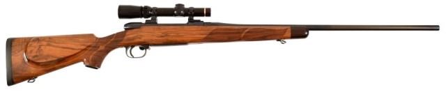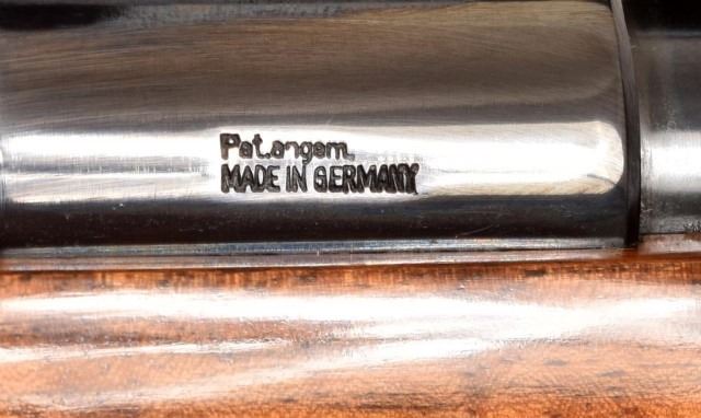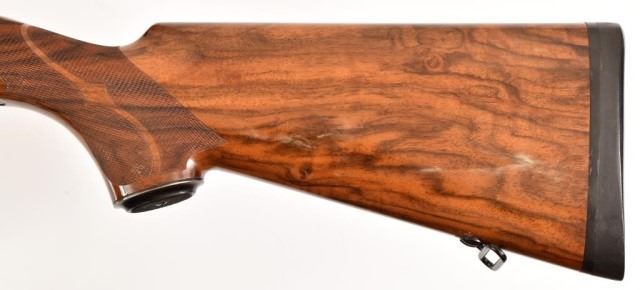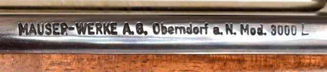* Mauser 3000L .375 H&H Magnum caliber rifle. Top quality German made left hand sporter. Has a beautiful custom stock of highly figured walnut with rosewood forend tip and steel pistol grip cap. Has a Leupold 1.5x5 scope. The metal is excellent, the stock has a few handling marks. 26" bbl.