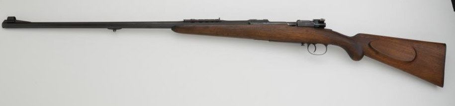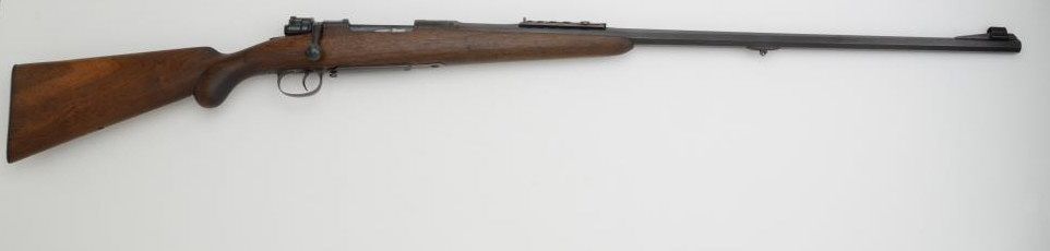 Mauser 98 bolt action Sporting rifle, 9.3 X 62 cal., 29-1/2” octagon barrel marked “R. Muller Cape Town” and “Sole Agent for South Africa”, five leaf rear sight, hooded front sight, single trigger, wood stock, #60099.This African hunting rifle is representative of the “Golden Age” period of big game hunting in Africa; overall very good condition with a good bore, action, markings and wood with a crack at the butt stock toeand a small crack at the left front fore end. Est.: $800-$1,600.