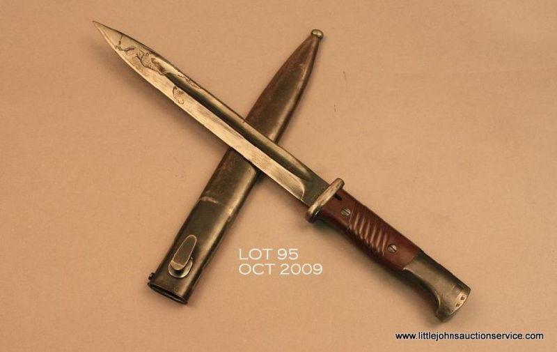 Mauser Bayonet and scabbard, #9105b, blade marked 41 cvl, 10” blade, in good to very good condition. Est. $75-$150.