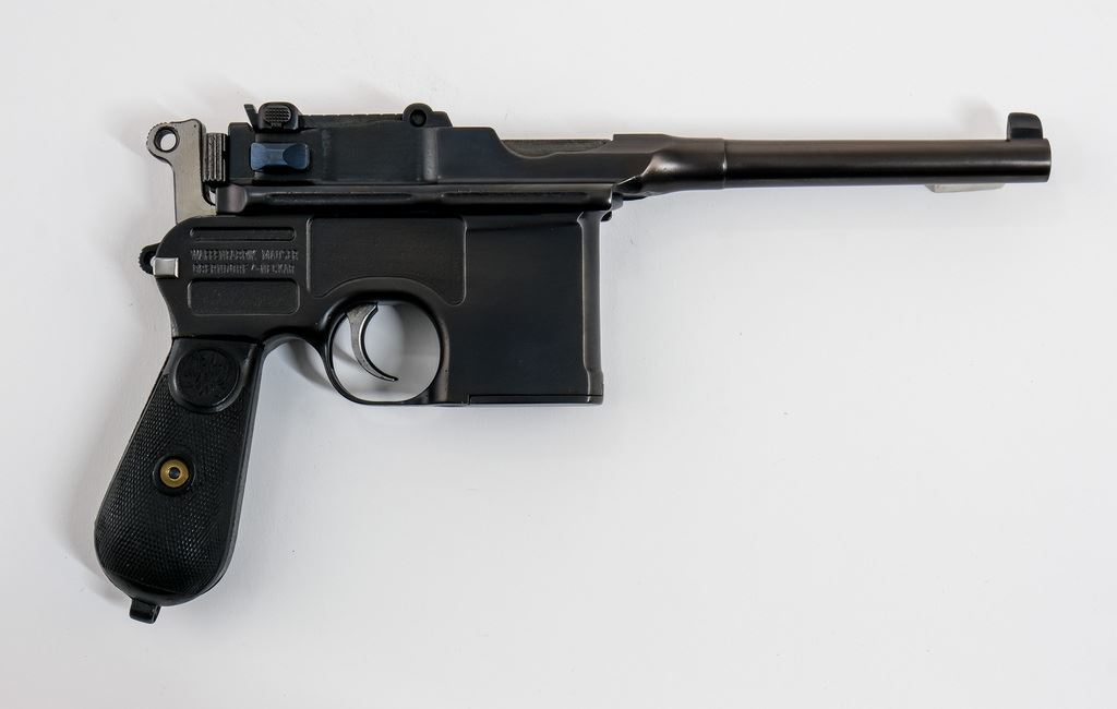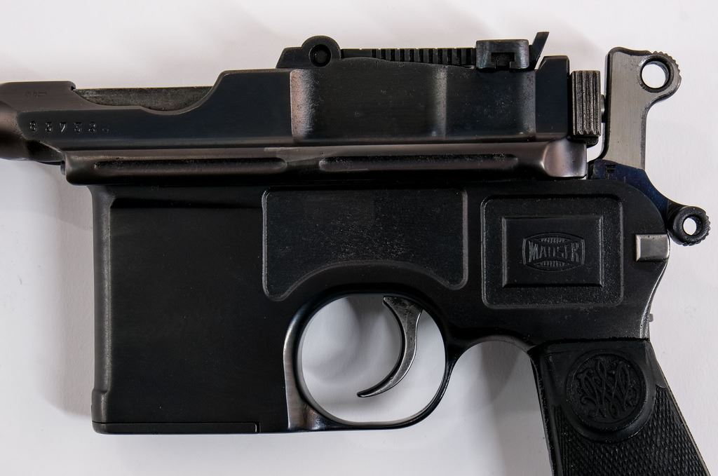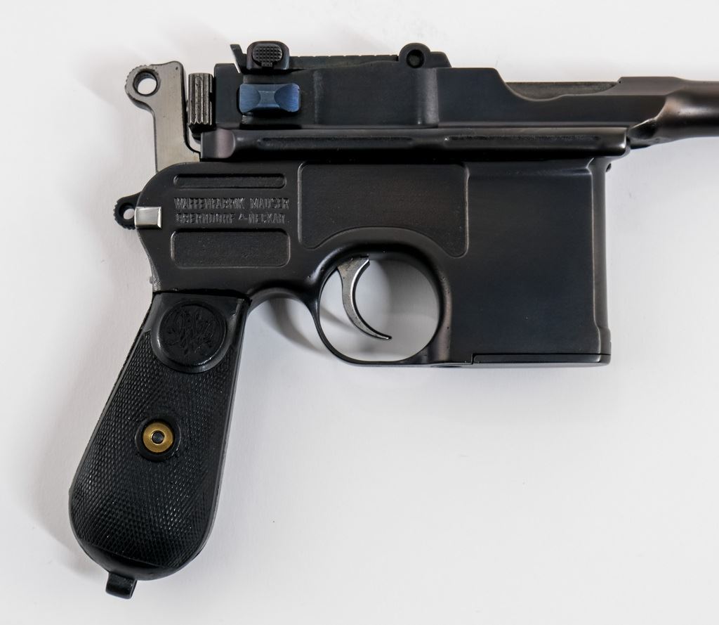 Ideal shooter C96 Broom handle circa 1930s that has been completely re-finished. The metal has a pleasant blue/black finish, repro rubber/plastic grips. Mechanically excellent. Has stock lug, missing lanyard loop. Smooth trigger, early 1000 meter sites. Perfect gun for broom handle enthusiast looking for a range toy. *C&R Eligible Condition: Excellent as re-finished. Mechanically excellent. Bore is sharp and bright. Actions is smooth and lubricated.