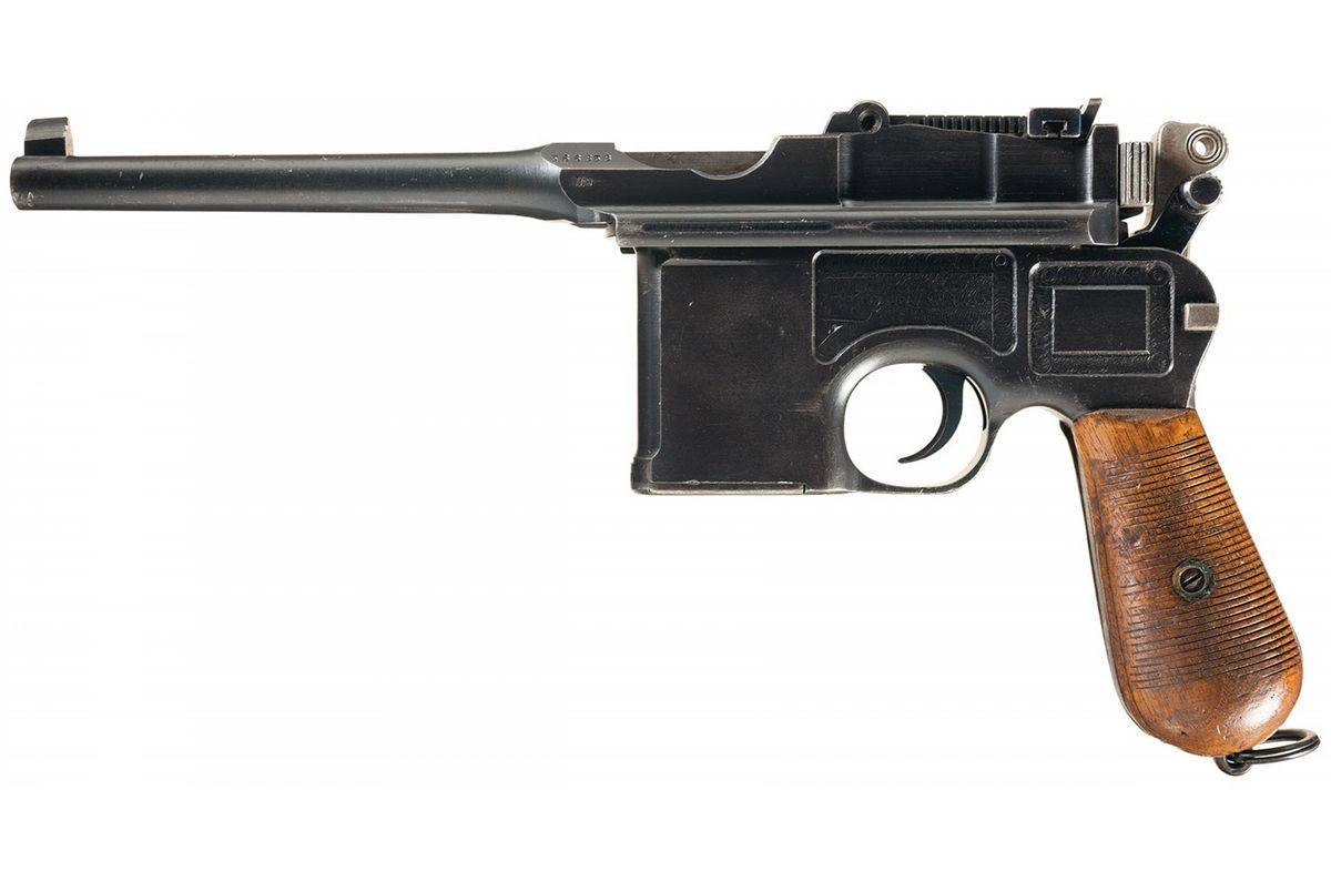 Blade front and tangent rear sights, graduated to 1,000 meters, with the top of the chamber marked "WAFFENFABRIK/MAUSER/OBERNDORF A/N", a "crown/crown/U" proof on the left and the serial number on the upper left side flat. "Crown/M" proof is present on the right side. Standard two line marking on the right side of the frame, with the milled panels, niter blue small parts, matching numbers, New Safety hammer, slotted back strap, lanyard ring and 32-groove hardwood grips.