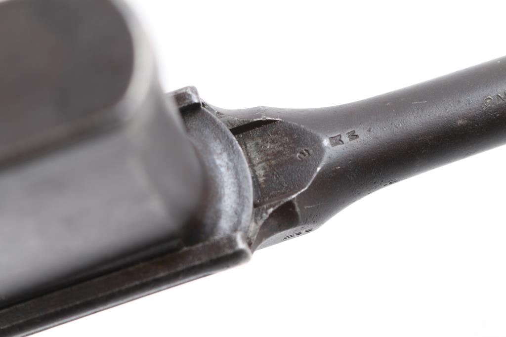 GOOD: Some minor replacement parts; metal smoothly rusted or lightly pitted in places, cleaned or re-blued; principal letters, numerals and design on metal legible; wood refinished, scratched bruised or minor cracks repaired; in good working order.
