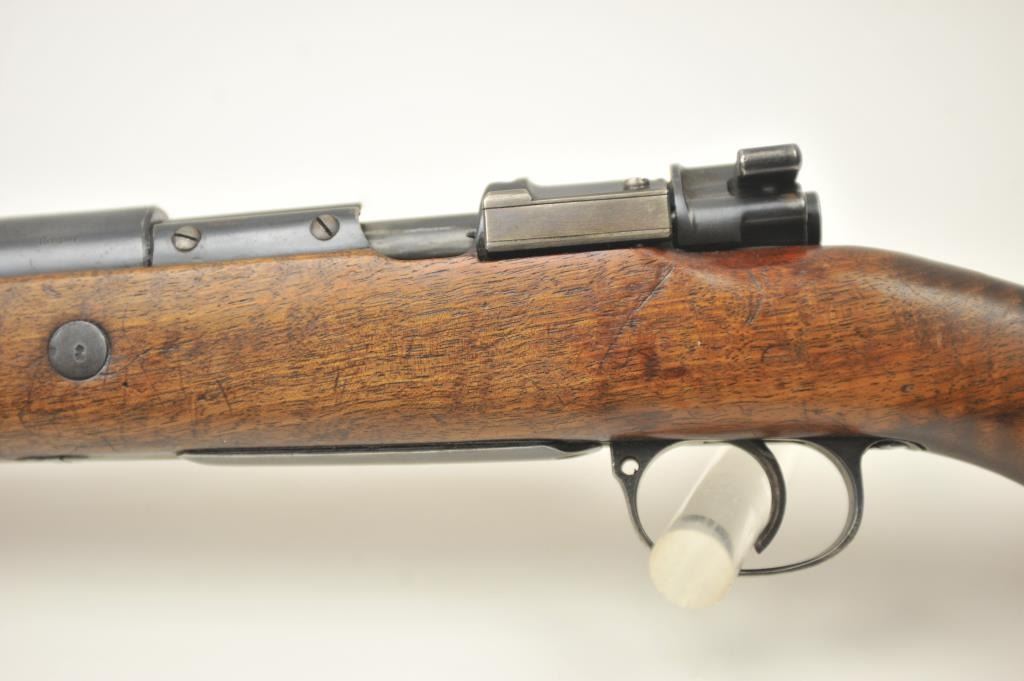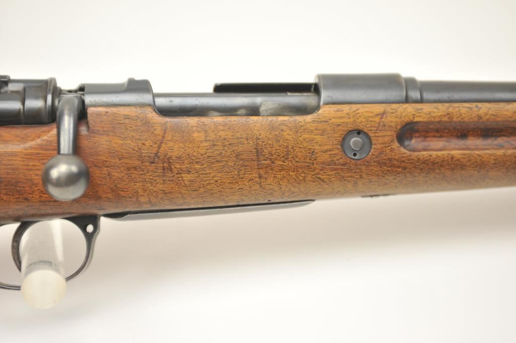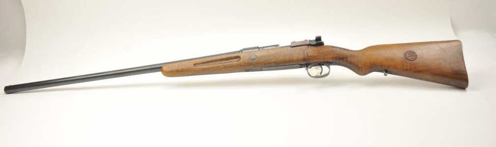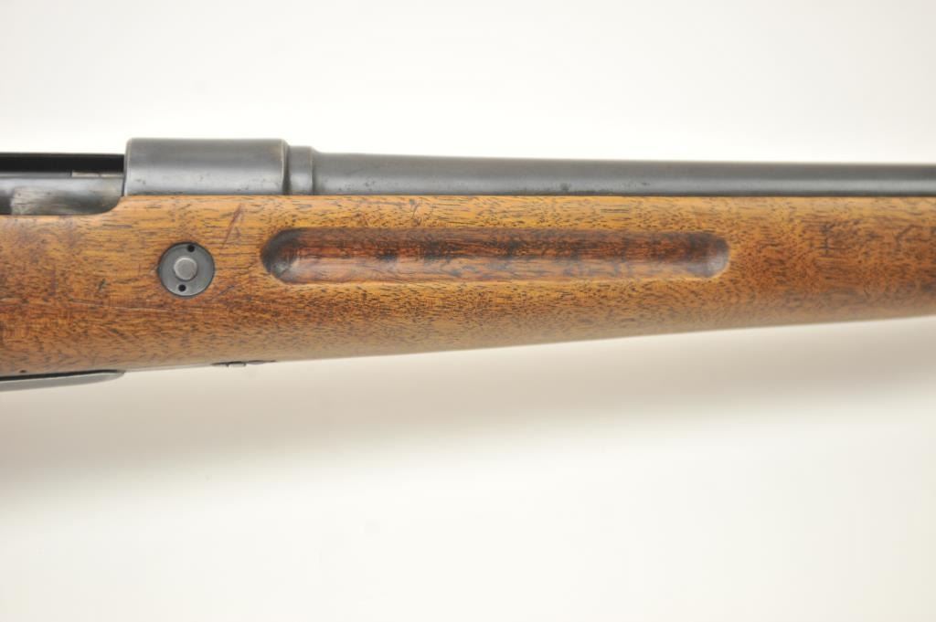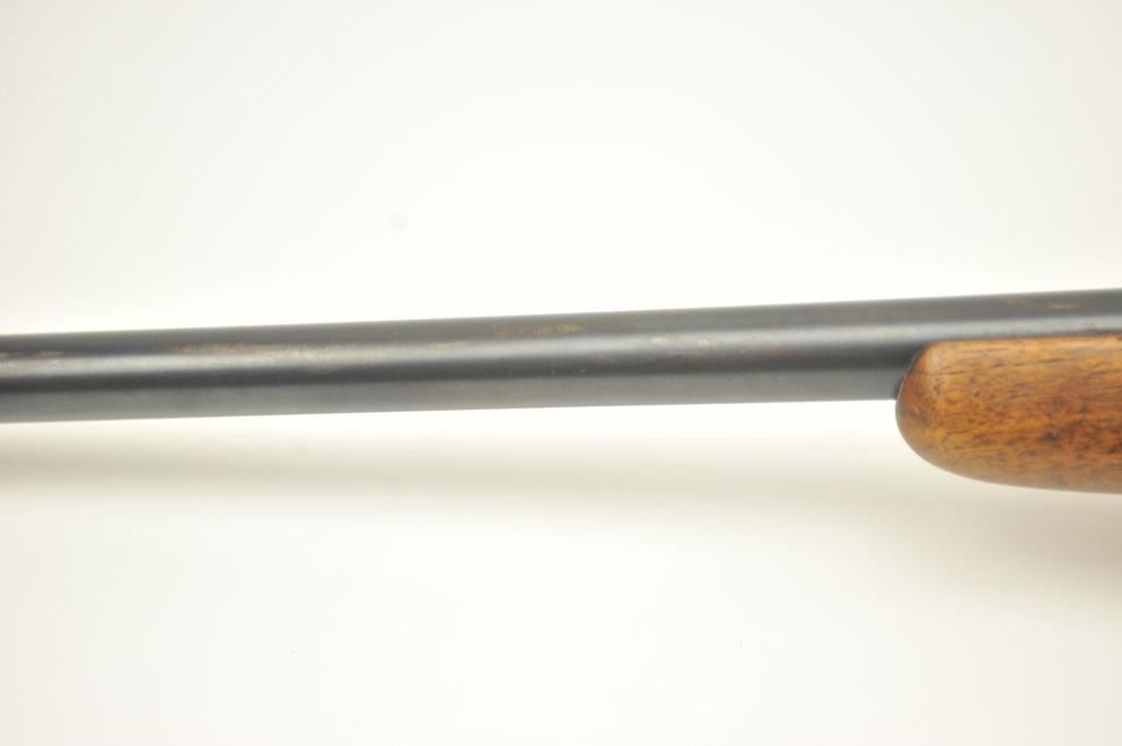 Mauser Conversion bolt action shotgun, 12 gauge, Serial #NSNV. The shotgun is in good to very good overall condition with a 27” barrel marked, “Germany” on the front ring. The shotgun retains a significant amount oftoning blue finish drifting to dark patina. The smooth wood stock with “Geha” impressed into both sides of the butt stock. The bore is good and the action works well. Geha shotguns were converted from GEW 98 Mauserrifles after WWI from approximately 1919-1929. This in an effort to jump start the German firearms industry under conditions of the Versailles Treaty. Est.: $150-$300. (C+R).